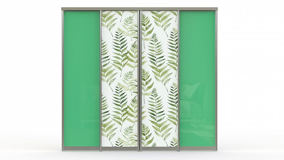 Двери-купе Фикс 1 BMS - это готовое решение для фасада шкафа, гардеробной или зонирования. Две створки, украшенные растительным принтом, гармонично сочетаются с двумя стеклянными полотнами, покрытыми цветной пленкой Оракал. Глянцевые поверхности в сочетании с серебристым алюминиевым профилем создают визуально легкий современный дизайн для гостиной или спального интерьера. Купить двери-купе Фикс 1 BMS с возможностью выбора цвета и размеров приглашаем в наш интернет-магазин.