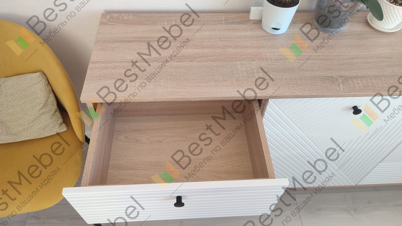 Номер заказа 1129867.Больше года искала себе комод с адекватным соотношением цена/качество. И, наверное, ещё бы долго искала, если бы подруга не посоветовала мне BestMebelShop, в котором они покупали большое количество мебели в новую квартиру.Что я могу сказать? Мои ожидания оправдались на все 100, очень довольна качеством комода, но больше всего понравилась возможность сделать заказ под индивидуальные размеры, а также самой выбрать цвет корпуса и фасадов.От сборки отказалась, сами собирали, это оказалось совсем даже не сложно, вдвоем справились! В комплекте к комоду были ножки, но их не стали устанавливать, потому что кот будет все свои игрушки под него таскать, а нам потом ползать и доставать. Комод очень аккуратный, красивый, потрясающе вписался в цветовое решение комнаты. Единственное, что запах не ушел пока, который чувствуется при открытии ящиков, но это у любой новой мебели такое.