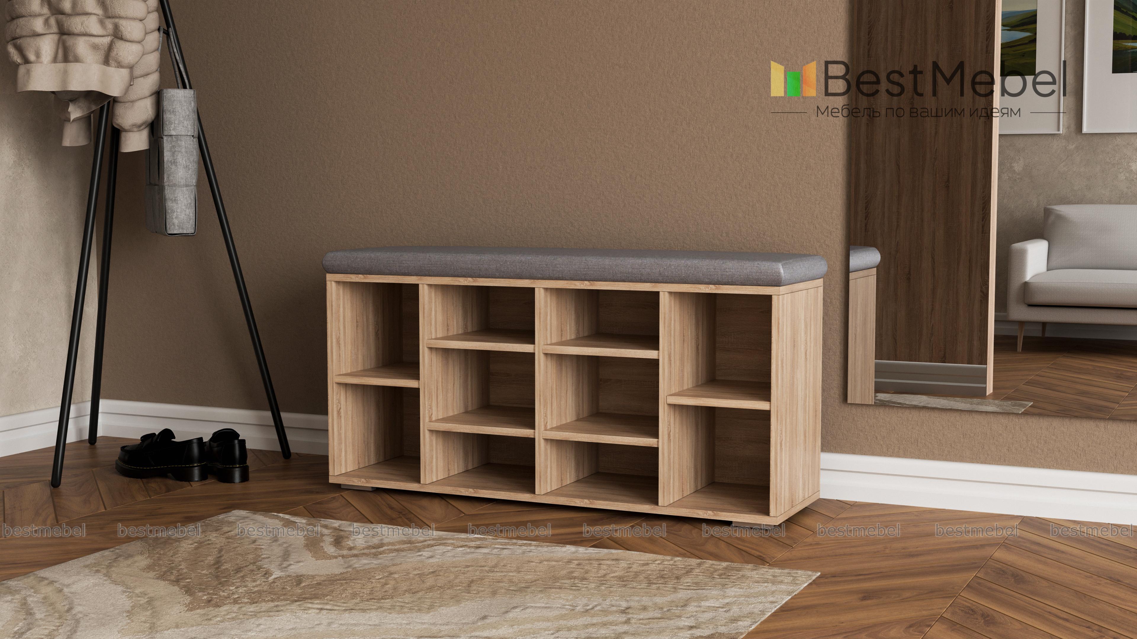 Заказ №00000822618 шикарная обувница! идеально вписалась в интерьер. Удобно, что полочки разной высоты подходят под разную обувь. Обувница устойчива, сидеть на ней очень удобно.