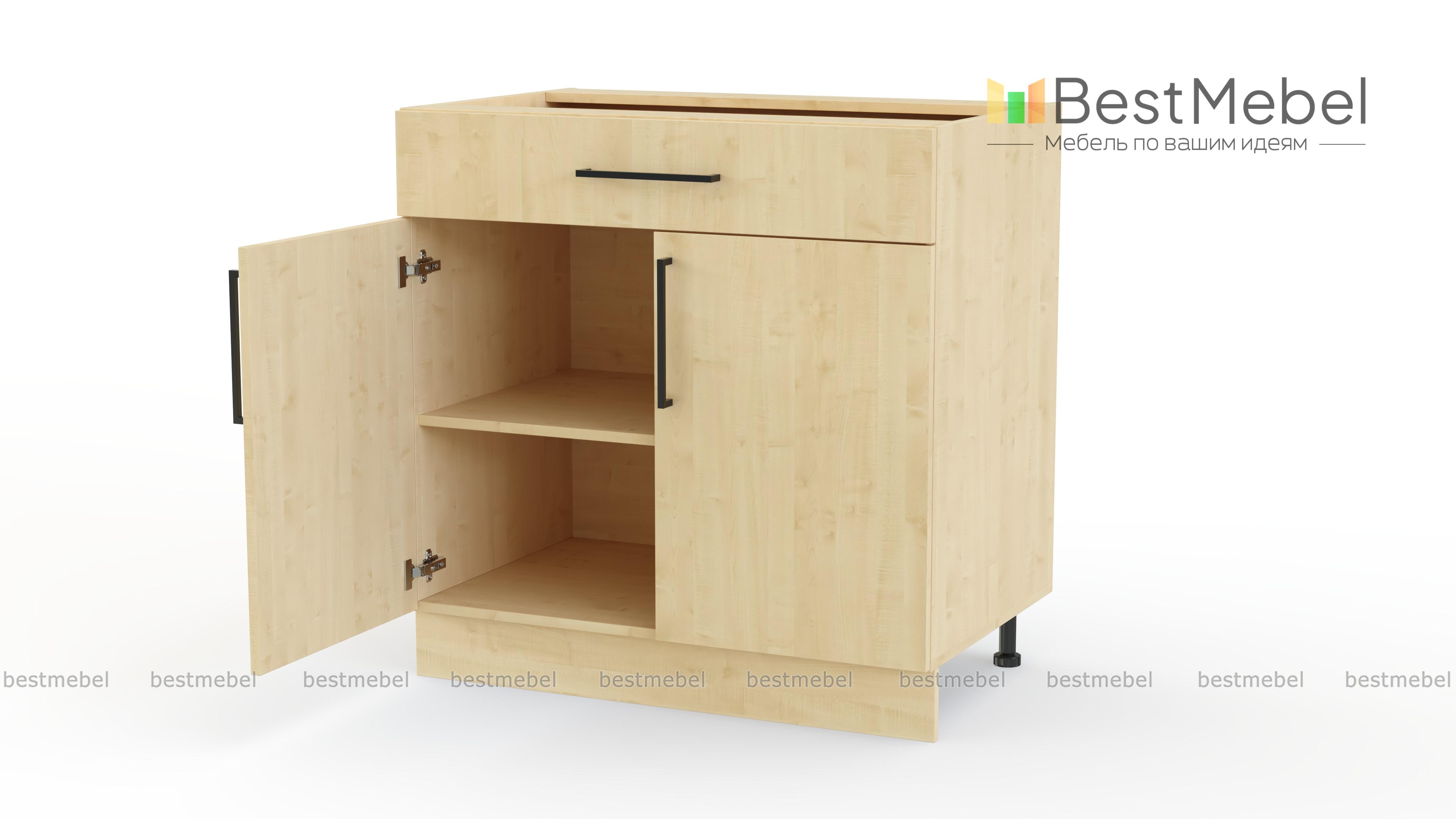 Шкаф нижний с ящиком Лайт BMS поможет разместить под рукой столовые приборы и кухонные мелочи, а для посуды и продуктов предусмотрено распашное отделение с полкой. Выполненный в нейтральном оттенке из прочной ламинированной плиты, шкаф надежен в эксплуатации и легко вписывается в современный интерьер. На фасады выдвижного ящика и двух дверей установлены стильные накладные скобы. Купить шкаф нижний с ящиком Лайт BMS вы сможете в нашем интернет-магазине с учетом необходимых размеров.