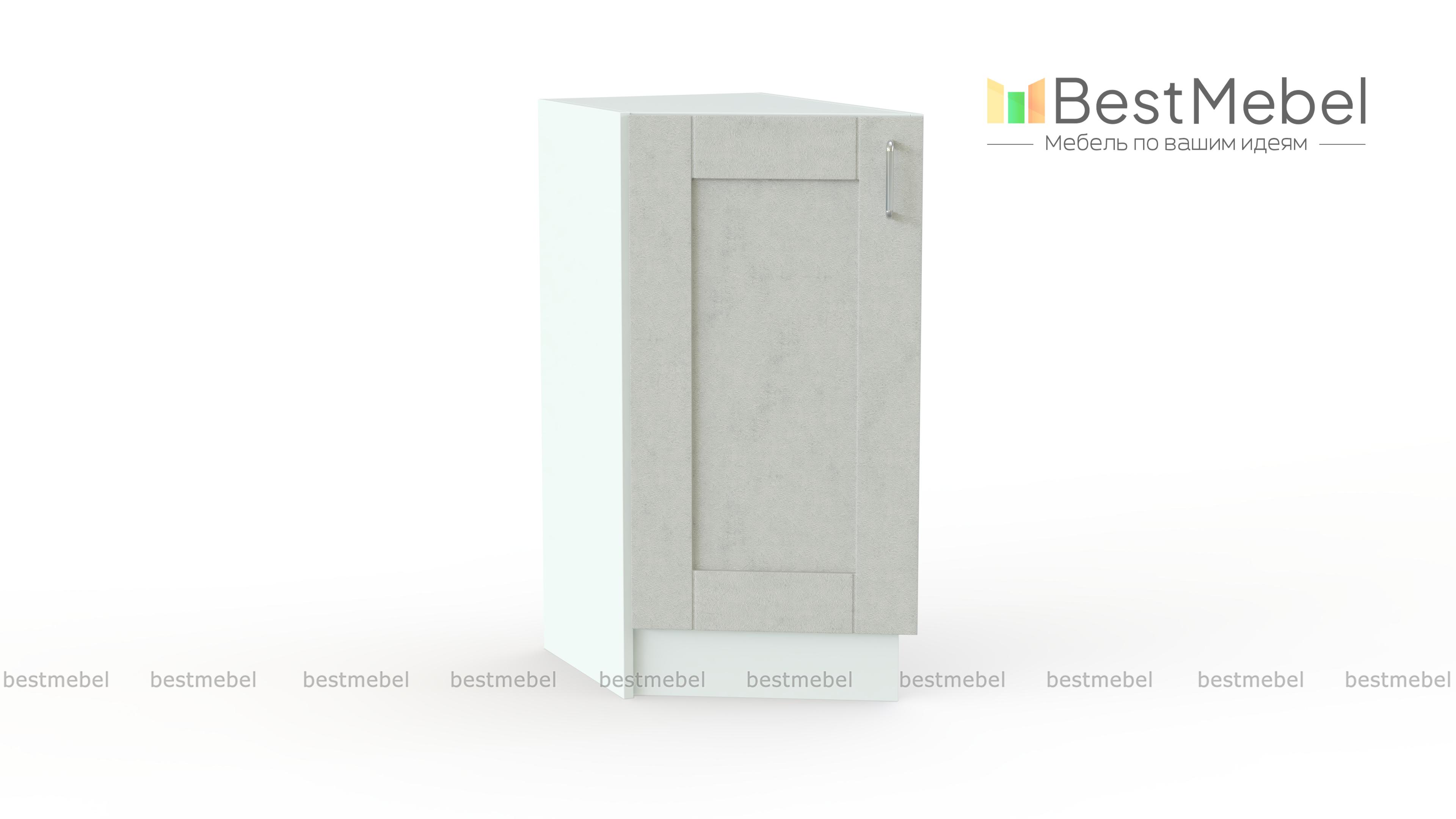 Шкаф нижний торцевой Лофт BMS предназначен для завершения нижнего ряда модулей кухонного гарнитура. Скошенный шкафчик позволит сгладить острые углы и сделать композицию визуально более легкой и гармоничной. Модель выполнена в едином для всей серии современном стиле и оборудована распашным отделением с полкой, удобным для хранения мелочей. Фрезерованный фасад в графитовых тонах декорирован стильной крупной ручкой под серебро. Купить шкаф нижний торцевой Лофт BMS вы сможете в нашем интернет-магазине, подобрав цветовое решение.
