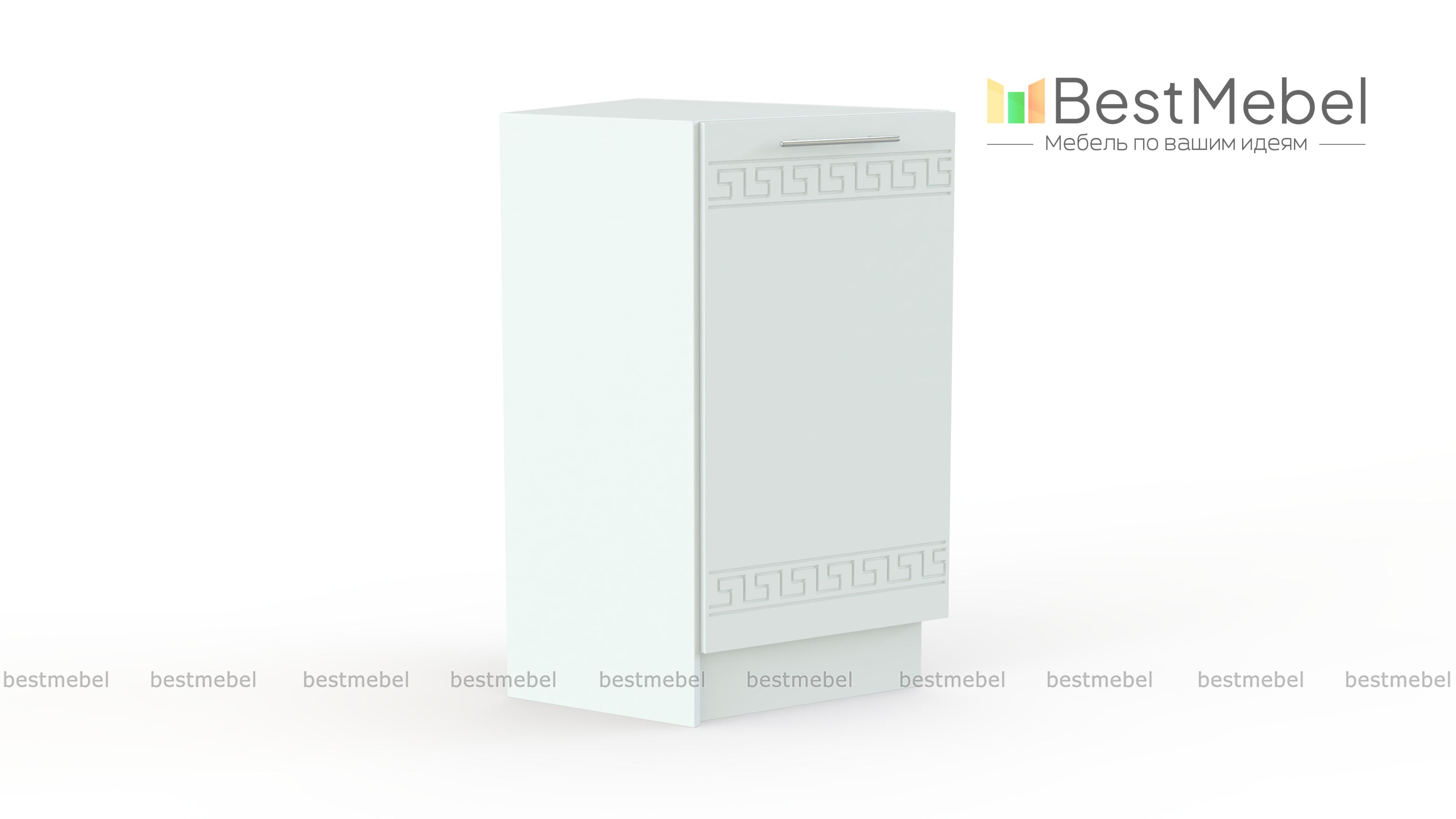 Тумба торцевая Греция BMS предназначена для завершения напольного ряда модулей кухонного комплекта. Тумба позволит сгладить углы и сделает интерьер визуально более легким. Не только эстетичная, но и функциональная, модель оборудована одним распашным отделением с полкой, которое оптимально подходит для хранения мелочей – баночек со специями, небольших кухонных аксессуаров. Фасад в общем для серии стиле украшен неброским орнаментом. Купить тумбу торцевую Греция BMS для стильного дополнения гарнитура вам поможет наш интернет-магазин.