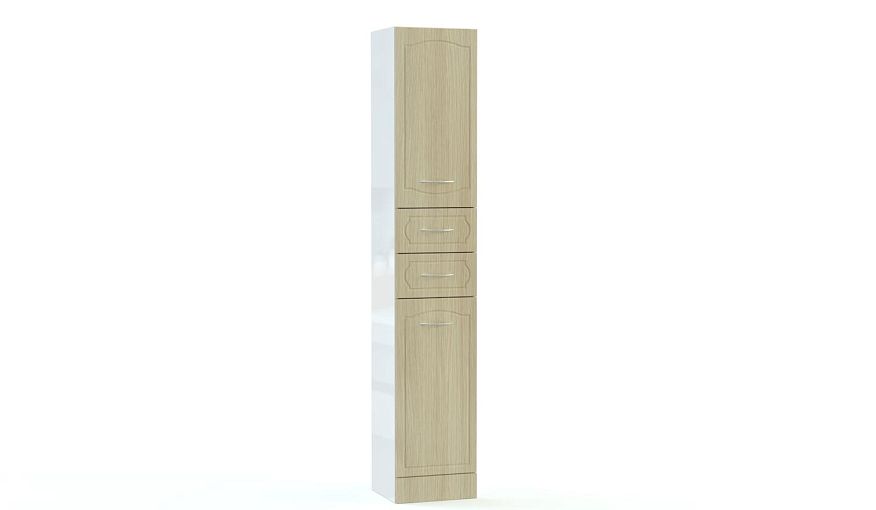 Пенал в ванную Восторг 2 BMS выполнен в светлых древесных тонах и украшен по фасаду классической фрезеровкой. Залогом особенной вместительности модели станет комбинированная конструкция – два распашных отделения с полками и два выдвижных ящика оптимальны для хранения разнообразных гигиенических принадлежностей. Износостойкие поверхности легко моются и надолго сохраняют эстетичный вид. Купить пенал в ванную Восторг 2 BMS вы сможете в нашем интернет-магазине по доступной цене.