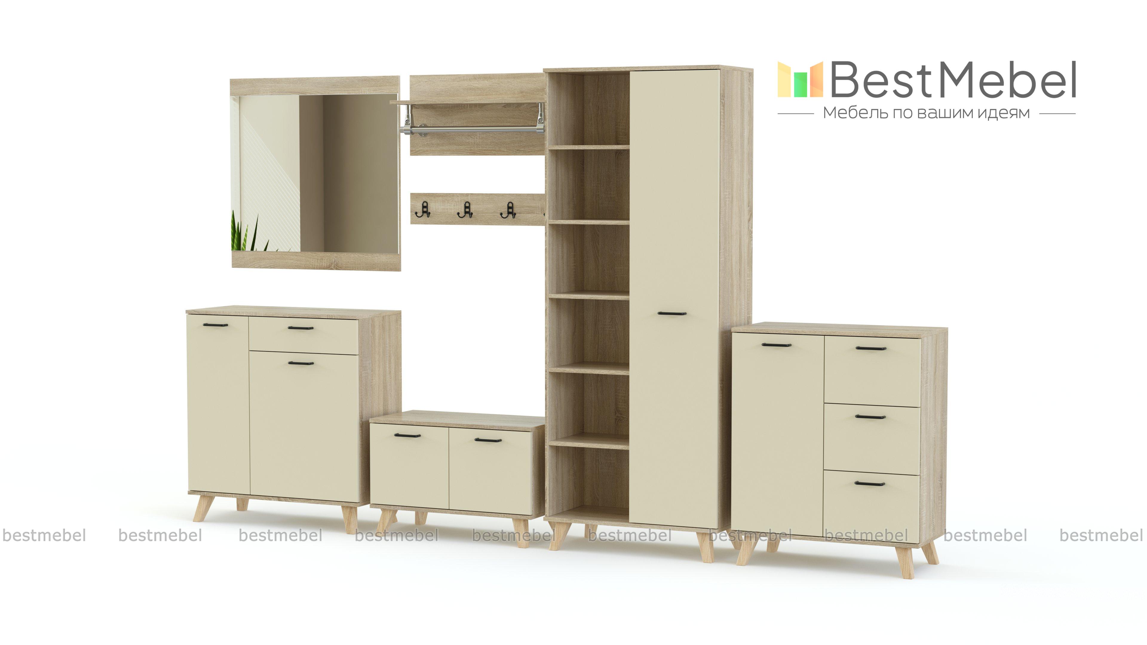 Прихожая Эста Нео 14 BMS выполнена из отдельных модулей, в которых простые формы сочетаются с трендовыми оттенками. Композиция включает в себя совмещенный со стеллажом шкаф, две тумбы, низкую распашную обувницу, навесное зеркало и две открытые вешалки – с крючками и штангой. Модули не выглядят громоздко благодаря высоким скошенным ножкам и позволяют правильно спланировать пространство. Купить прихожую Эста Нео 14 BMS вы сможете в нашем интернет-магазине, подобрав оптимальные размеры и цветовое решение.