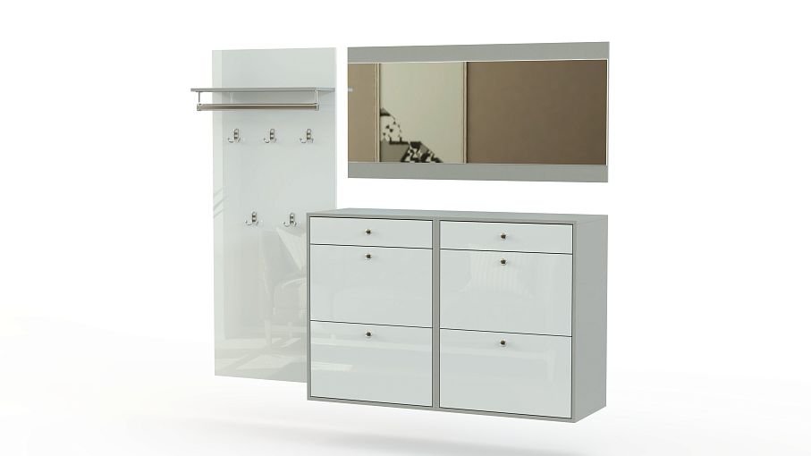 Прихожая Техно 11 BMS воплощает достоинства минимализма в элегантной модульной композиции. Подвесная конструкция входящих в комплект предметов визуально облегчает интерьер, а глянцевые, отражающие свет поверхности, подчеркивают иллюзию парящей мебели. В комплект входят открытая вешалка с полкой под головные уборы и штангой, дополненная выдвижными ящиками для мелочей тумба и панно с большим горизонтальным зеркалом. Купить прихожую Техно 11 BMS и оборудовать комфортную и эстетичную входную зону вам поможет наш интернет-магазин.