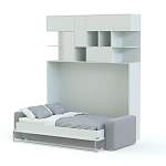 Шкаф-кровать с диваном Мартин BMS подходит для меблировки гостиных, детских и молодежных комнат. Многофункциональная композиция в скандинавском стиле поможет оборудовать уютную зону отдыха, разместить книги, интерьерные украшения и множество бытовых мелочей. Высокий шкаф с антресолью и разноплановыми полками дополнен двухместным диваном, а центральная откидная часть с горизонтальным механизмом трансформации скрывает раскладную кровать. Купить шкаф-кровать с диваном Мартин BMS и сэкономить пространство вам поможет наш интернет-магазин.