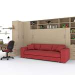 Шкаф-кровать с диваном Шелли 21 BMS поможет оптимизировать интерьер, сэкономив полезную площадь и разгрузив помещение от лишней мебели. В угловом комплексе предусмотрено все необходимое для размещения большого количества вещей, комфортного отдыха и полноценного сна. Стенка с платяными отделениями, ящиками и открытыми книжными полками дополнена модулем-трансформером с откидной кроватью и уютным диваном. Купить шкаф-кровать с диваном Шелли 21 BMS приглашаем в наш интернет-магазин, подобрав наиболее подходящее цветовое решение.