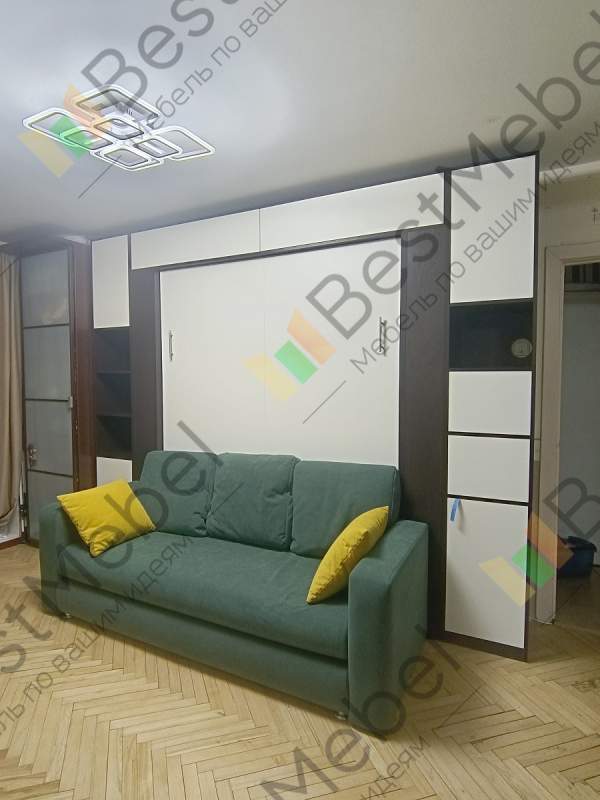 Шкаф-кровать Венора BMS – это эффектная минималистичная стенка с белыми фасадами в контрастной окантовке. Модель 3 в 1 станет оптимальным выбором для гостиных или студий, помогая сэкономить пространство. Композиция включает в себя два симметрично расположенных шкафа, оборудованных удобной системой хранения, центральный модуль с антресолью, открытыми полками за фальшпанелями и откидной кроватью и комфортный двухместный диван. Купить шкаф-кровать Венора BMS приглашаем в наш интернет-магазин.
