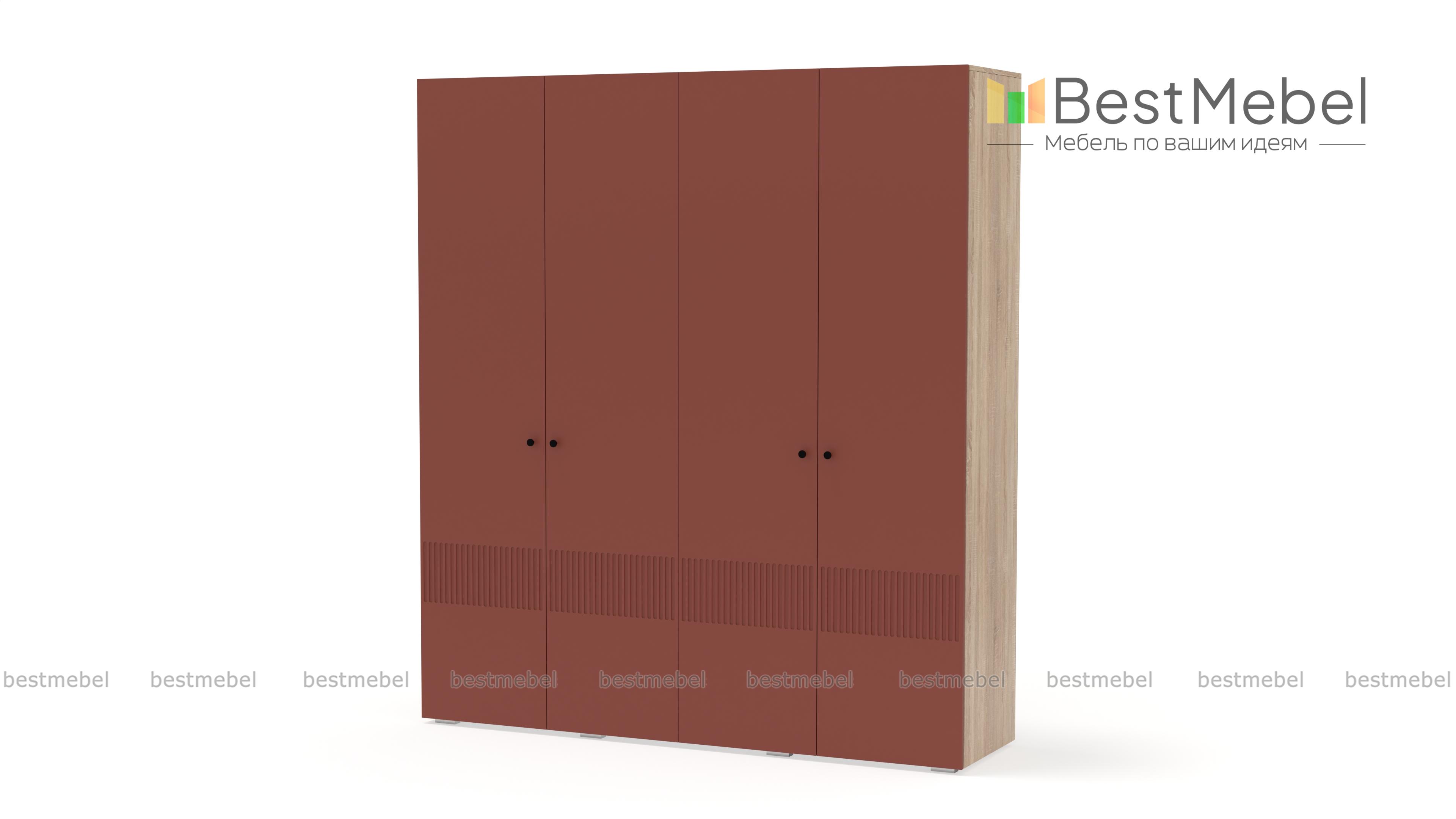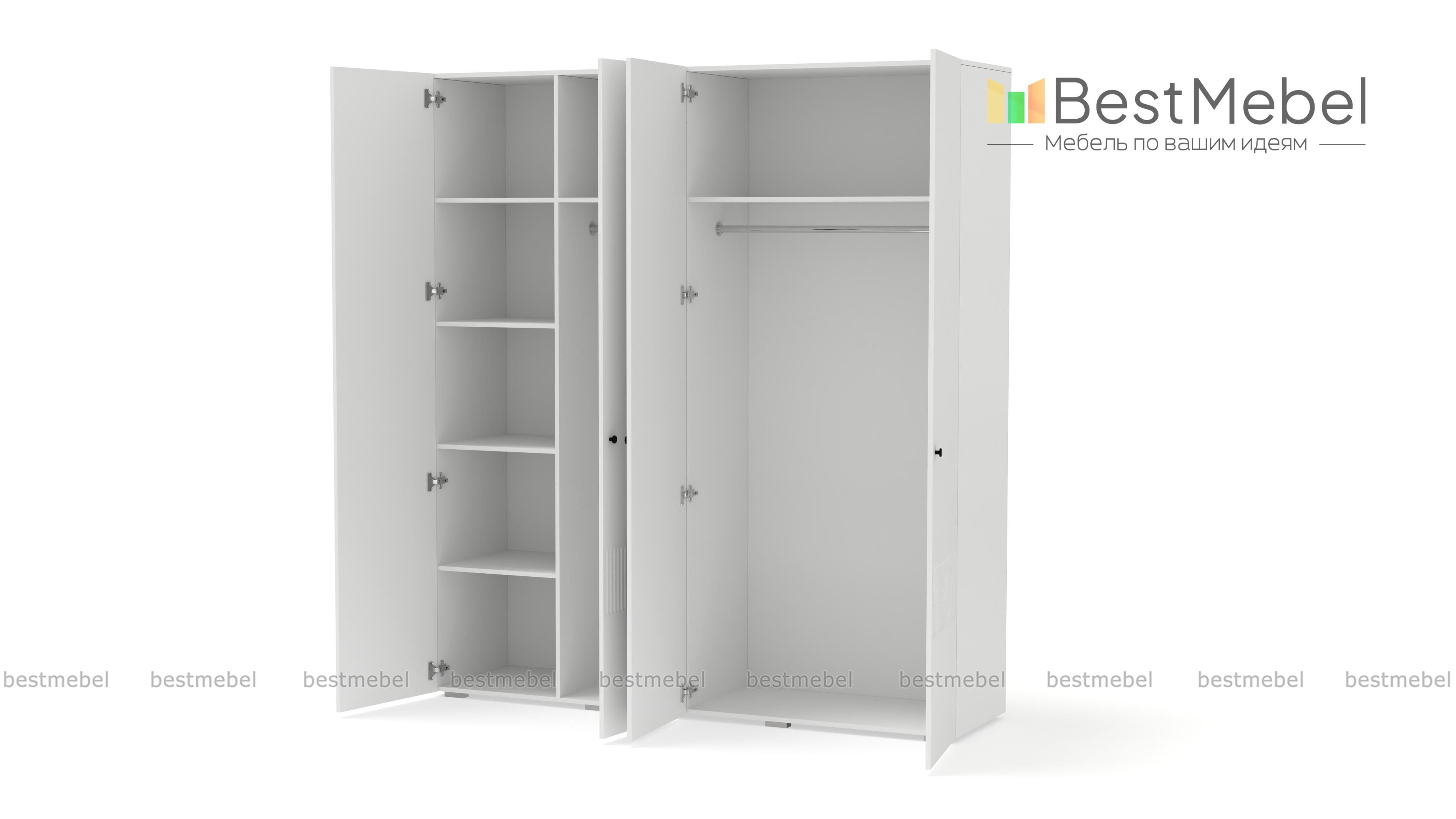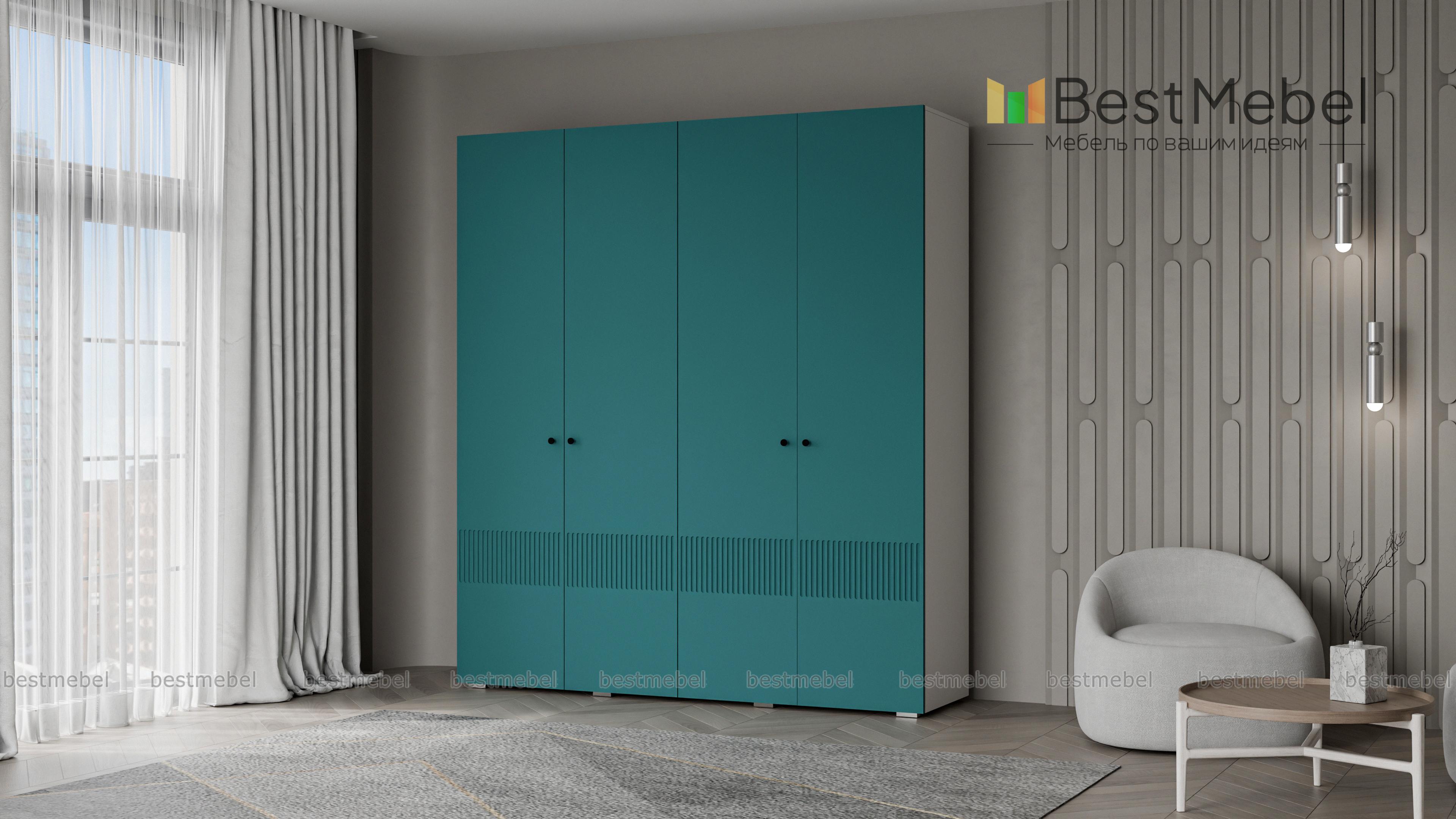 Шкаф распашной Джосс 4 BMS — практичная и стильная четырехдверная модель в прихожую, детскую или спальню. Два отделения со штангами и ряд полок слева помогут вам расположить вещи по категориям — от верхней одежды до трикотажа. Акцентный цветной фасад гардероба украшает фрезеровка, на дверцах установлены миниатюрные круглые ручки. Купить шкаф распашной Джосс 4 BMS вы сможете в нашем интернет-магазине, изменив по желанию размеры, тип ручек и цветовую гамму.