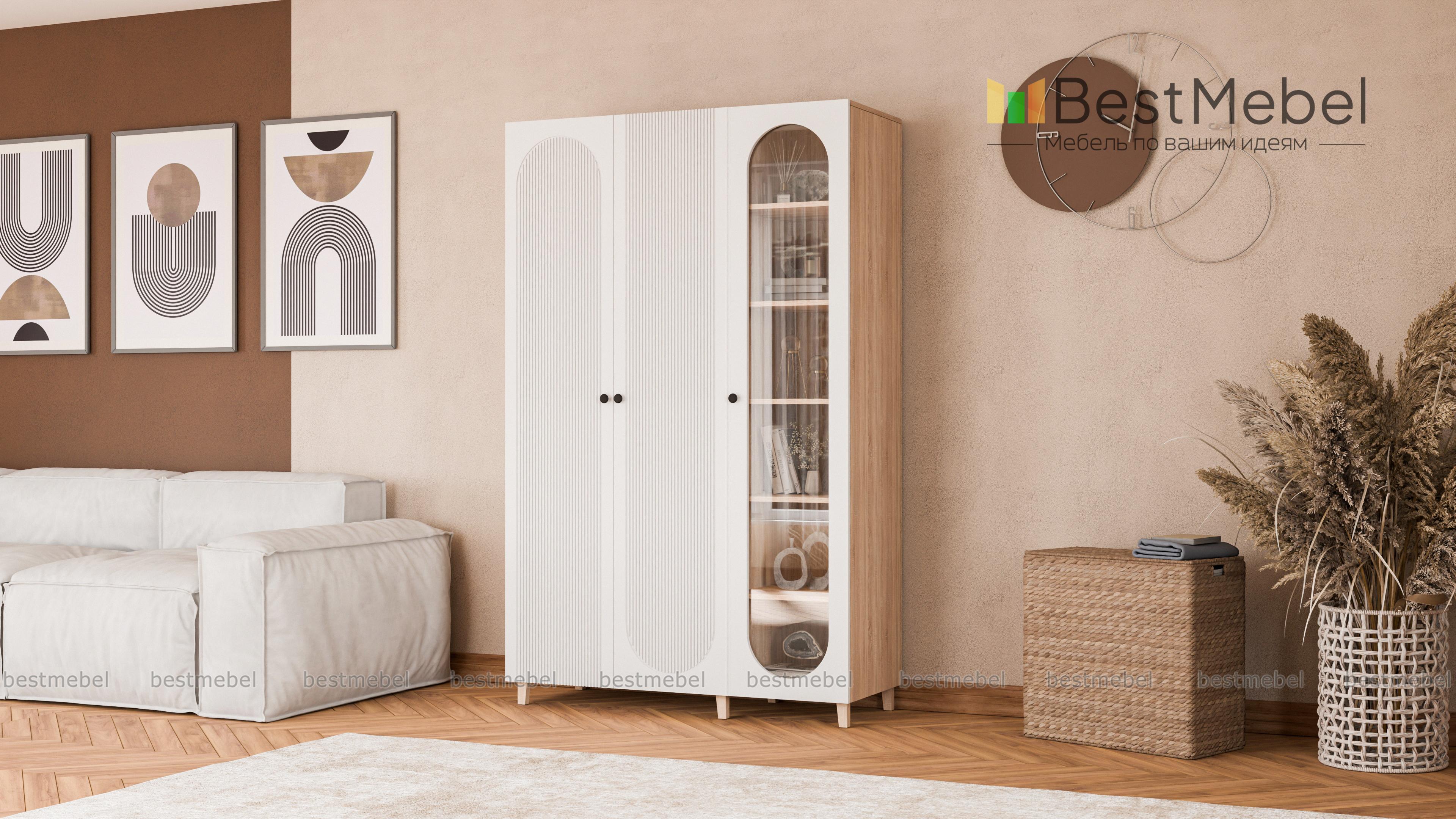 Шкаф распашной Рене 9 BMS легко решает разные задачи хранения благодаря продуманному функционалу. Двухдверный платяной шкаф объединен с застекленной секцией для книг, памятных вещей и декора, оформленной овальным вырезом. Мягкие природные оттенки корпуса из ЛДСП красиво сочетаются с контрастным фасадом, украшенным оригинальной фрезеровкой. Купить шкаф распашной Рене 9 BMS с выбором фурнитуры и цвета по каталогу приглашаем в наш интернет-магазин.