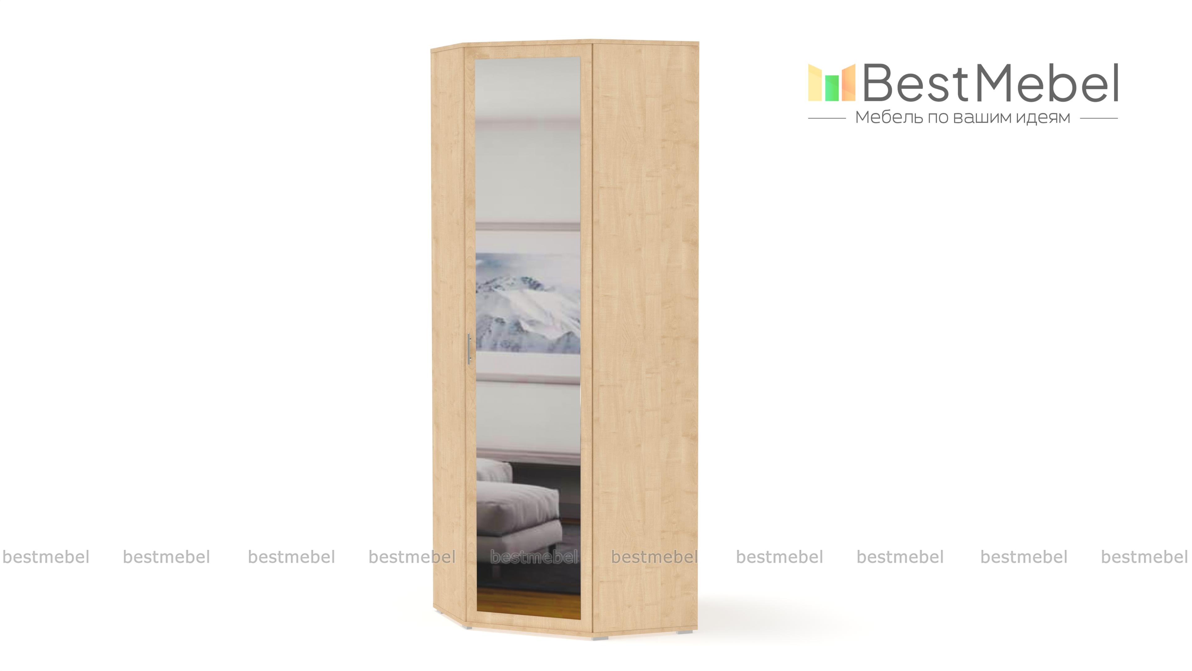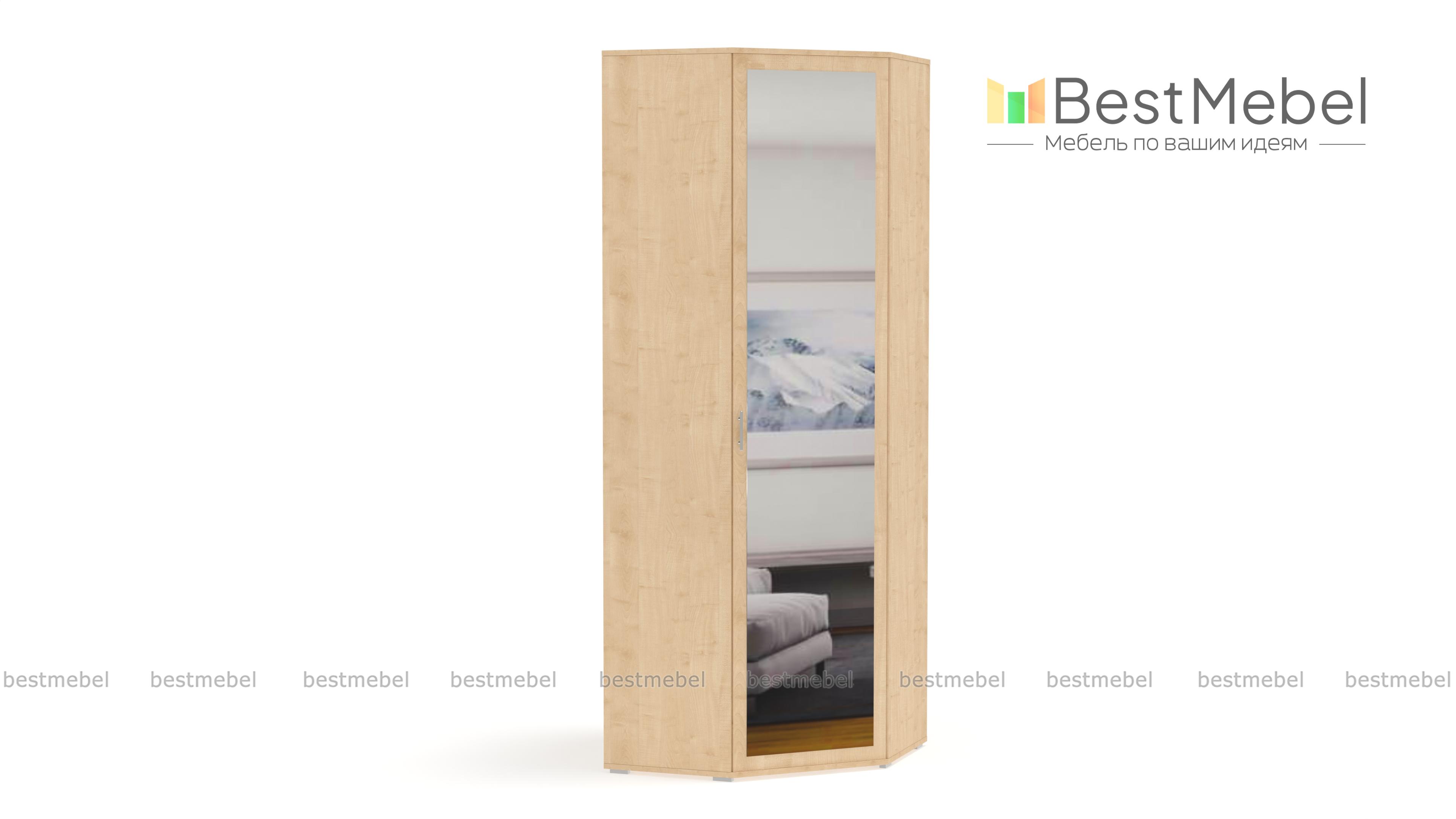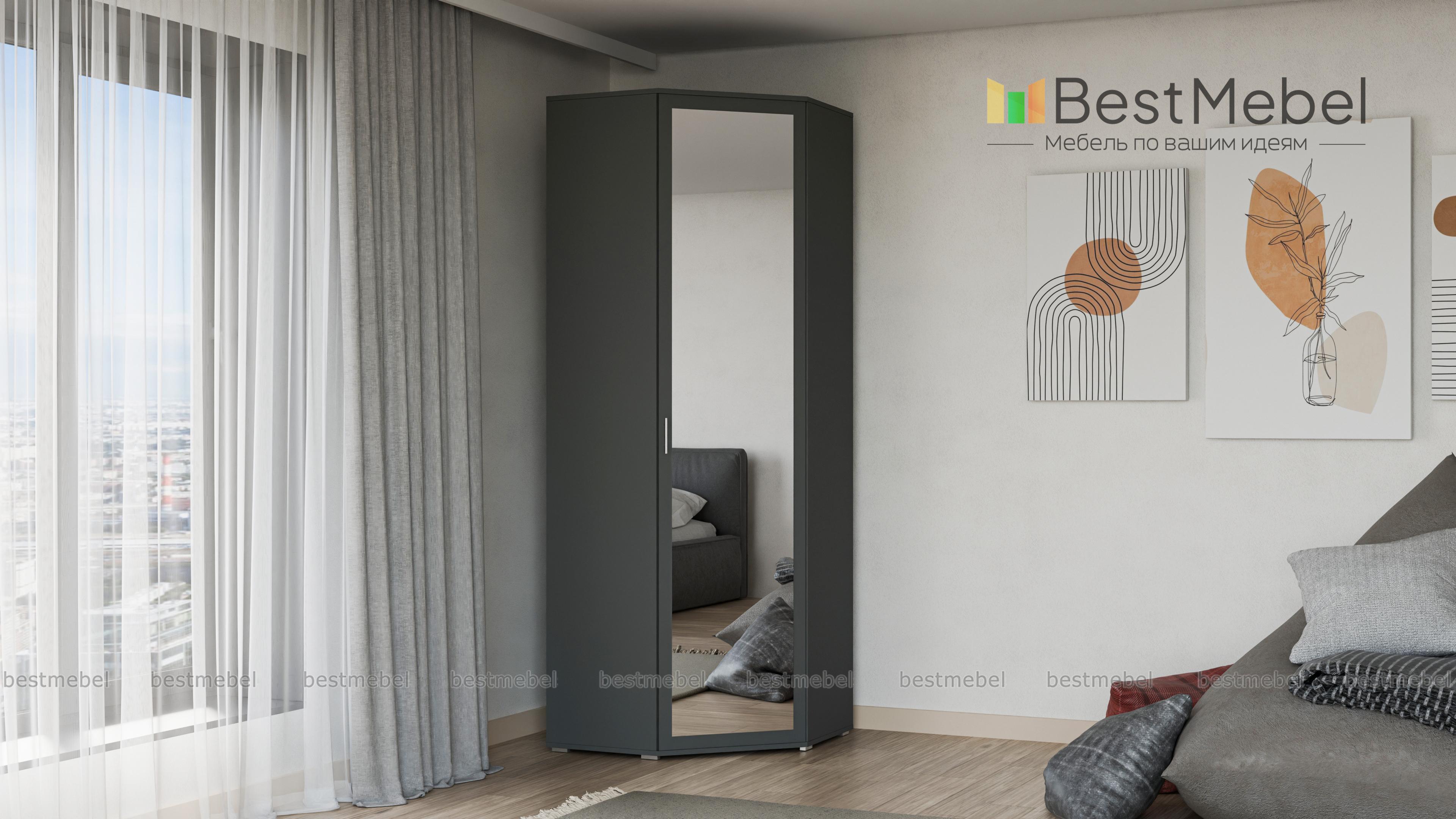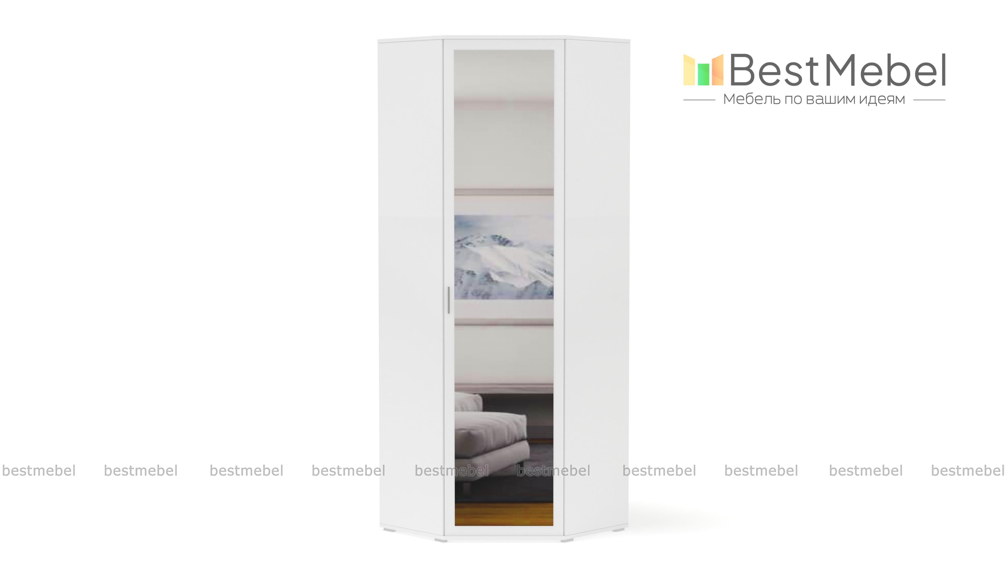 Шкаф угловой ШК-814 Мелисса BMS - удобный предмет мебели с эргономичной формой. Незаметно занимая свой угол, он вместит в себя множество полезных вещей: одежды, обуви, бытовых предметов. Для этого в базовой комплектации модели предусмотрено 5 полок, штанга для плечиков и антресольный отдел.Привлекательный дизайн с зеркалом на дверце и аккуратными ножками, делающими шкаф легче визуально, станет украшением интерьера. Цветовое решение выбирается заказчиком индивидуально с помощью нашей палитры. Купить шкаф угловой ШК-814 Мелисса BMS недорого можно в нашем онлайн-магазине.