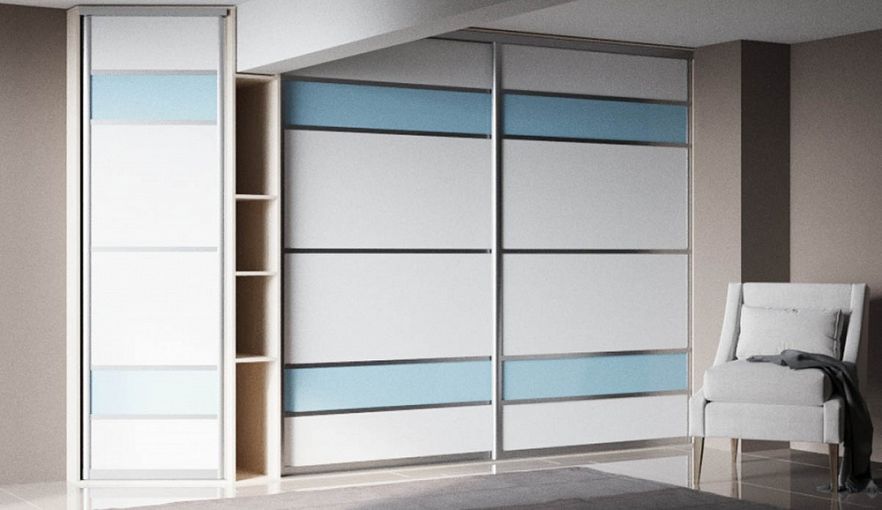 Шкаф-купе № 65 BMS станет отличным решением для помещений нестандартной планировки. Выгодно использовать пространство поможет стильная композиция из двухдверного шкафа-купе, стеллажа и распашной торцевой секции. Продуманная система хранения позволит разместить одежду, домашний текстиль, разнообразные бытовые вещи. Выполненный в белом цвете с горизонтальными цветными вставками и профилем в оттенке серебро, шкаф делает комнату визуально светлее и легче. Купить шкаф-купе № 65 BMS вы сможете в нашем интернет-магазине с учетом необходимых параметров.