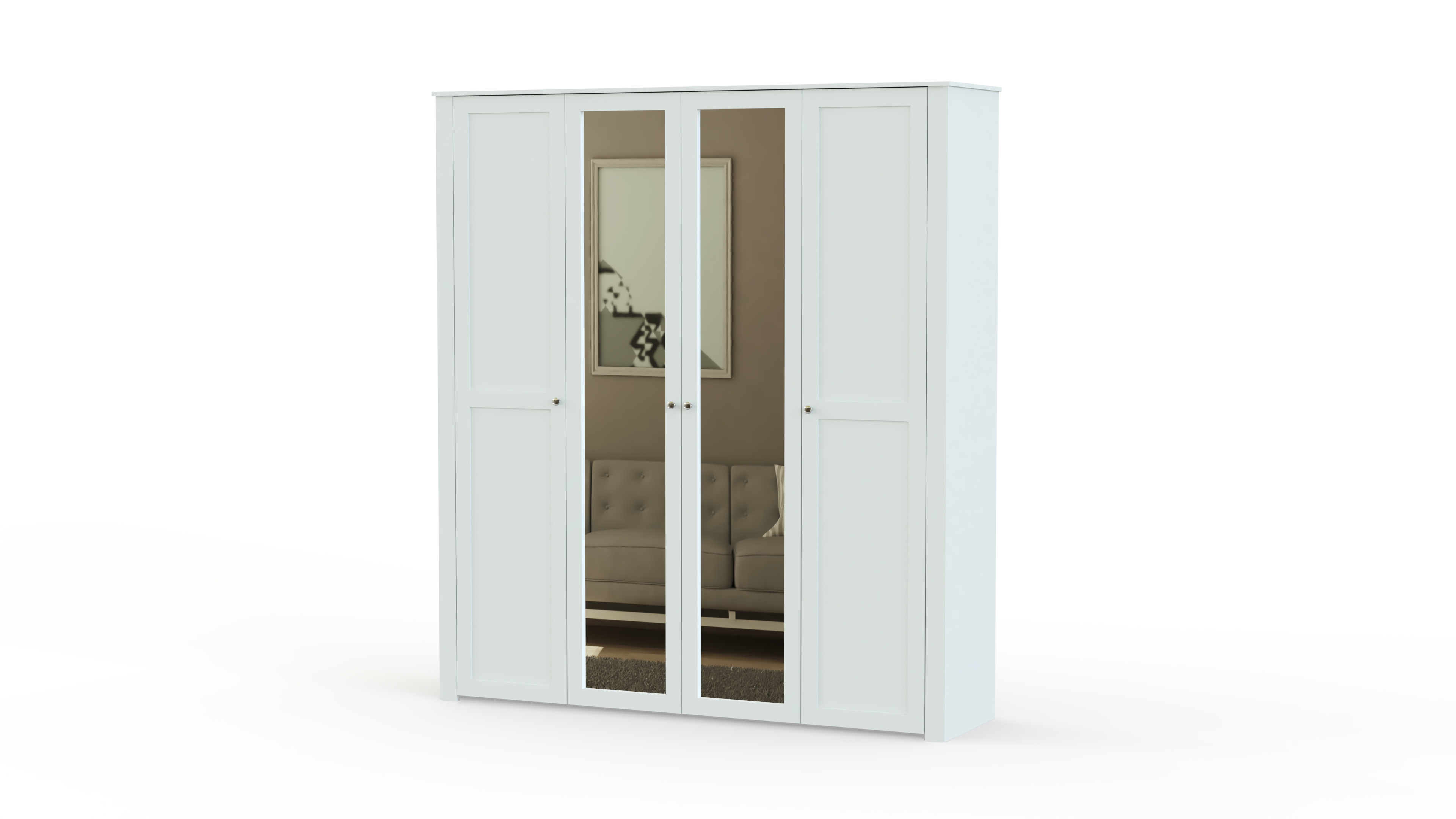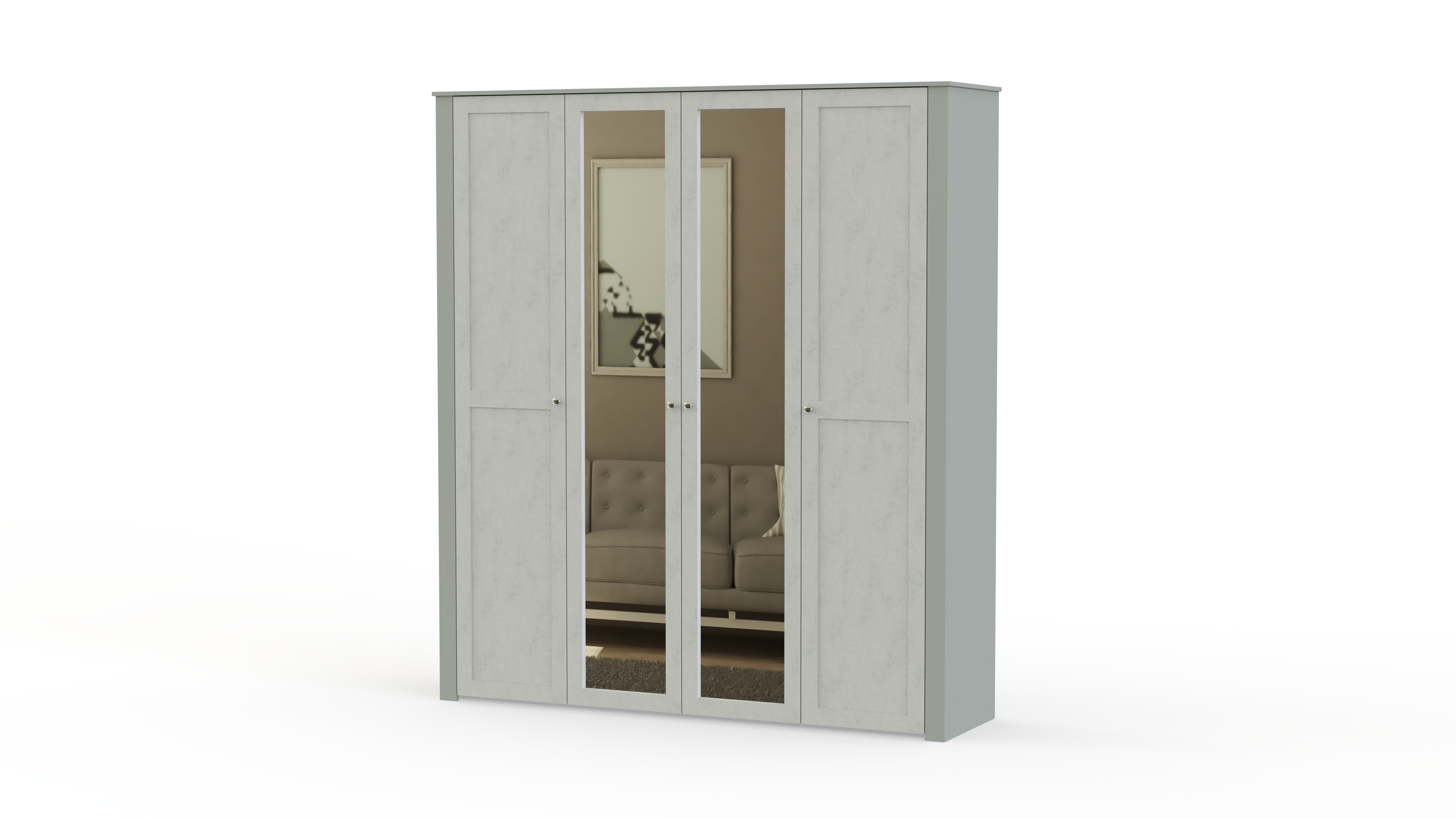 Еще одна модель в полюбившемся владельцам современных квартир и загородных домов стиле прованс. Нежные цвета, элегантный внешний вид и изящный декор делают спальню Бриз комплектация 2 BMS неизменно популярной. Гарнитур состоит из вместительного шкафа с зеркальными дверцами, двуспальной кровати с мягким изголовьем, дополненной оригинальными тумбами, и милого туалетного столика с винтажными ящичками и овальным поворотным зеркалом для идеального макияжа.