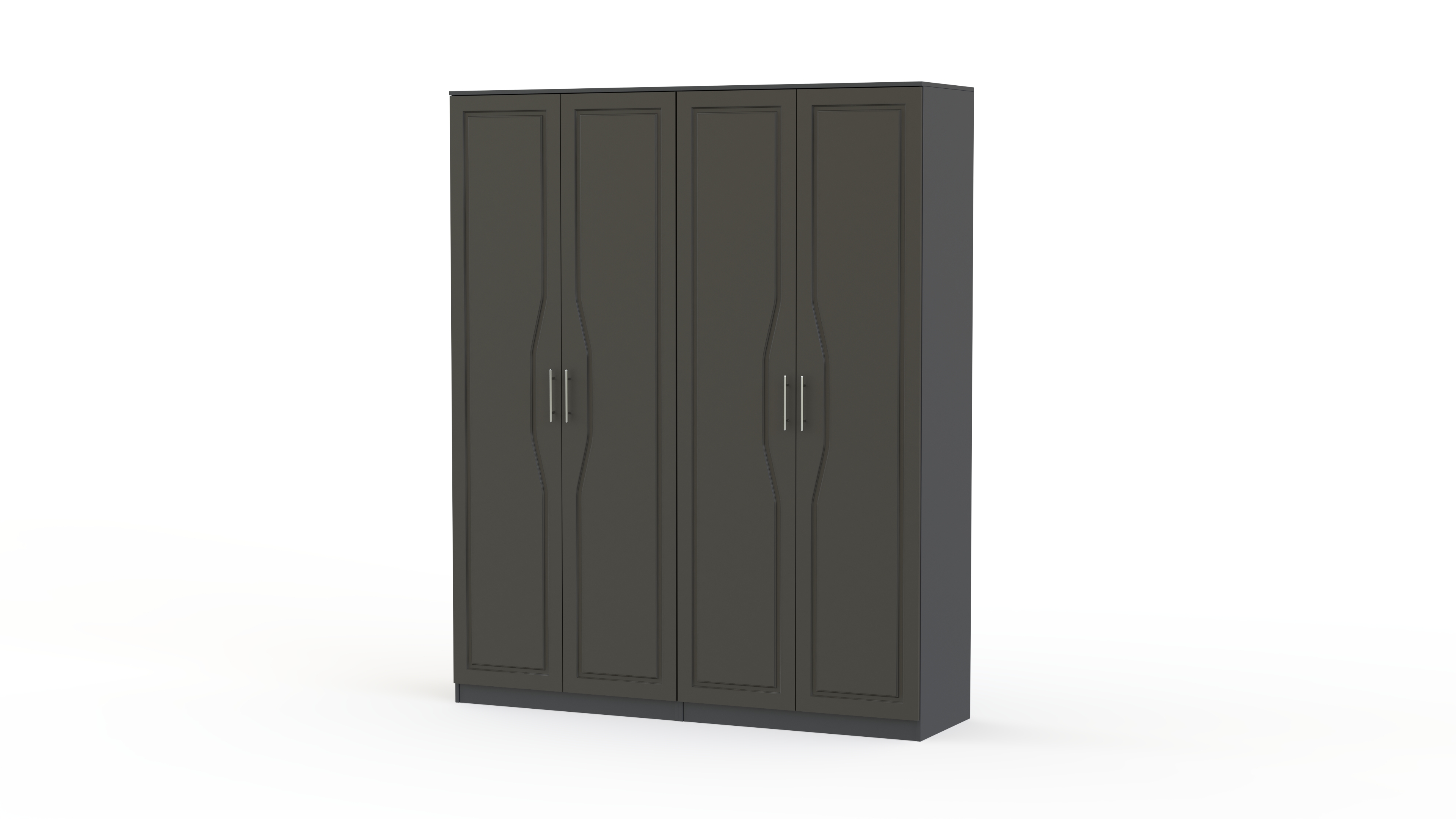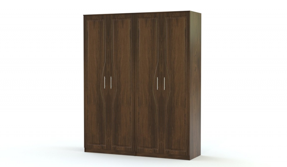 Спальня Лас Вегас BMS выдержана в одном глубоком тоне, сделана в классическом современном стиле, качественная и основательная. Эта мебель будет отлично смотреться в любом помещении, к ней подойдут любые обои или шторы. Комплект состоит из большой кровати без ножек, двух прикроватных тумб с открытой нишей и отделением с полкой за дверкой и большого 4-х створчатого одежного шкафа. Вы можете заказать спальню Лас Вегас BMS в другом цвете, поменять при заказе базовые размеры мебели, изменить количество предметов гарнитура.