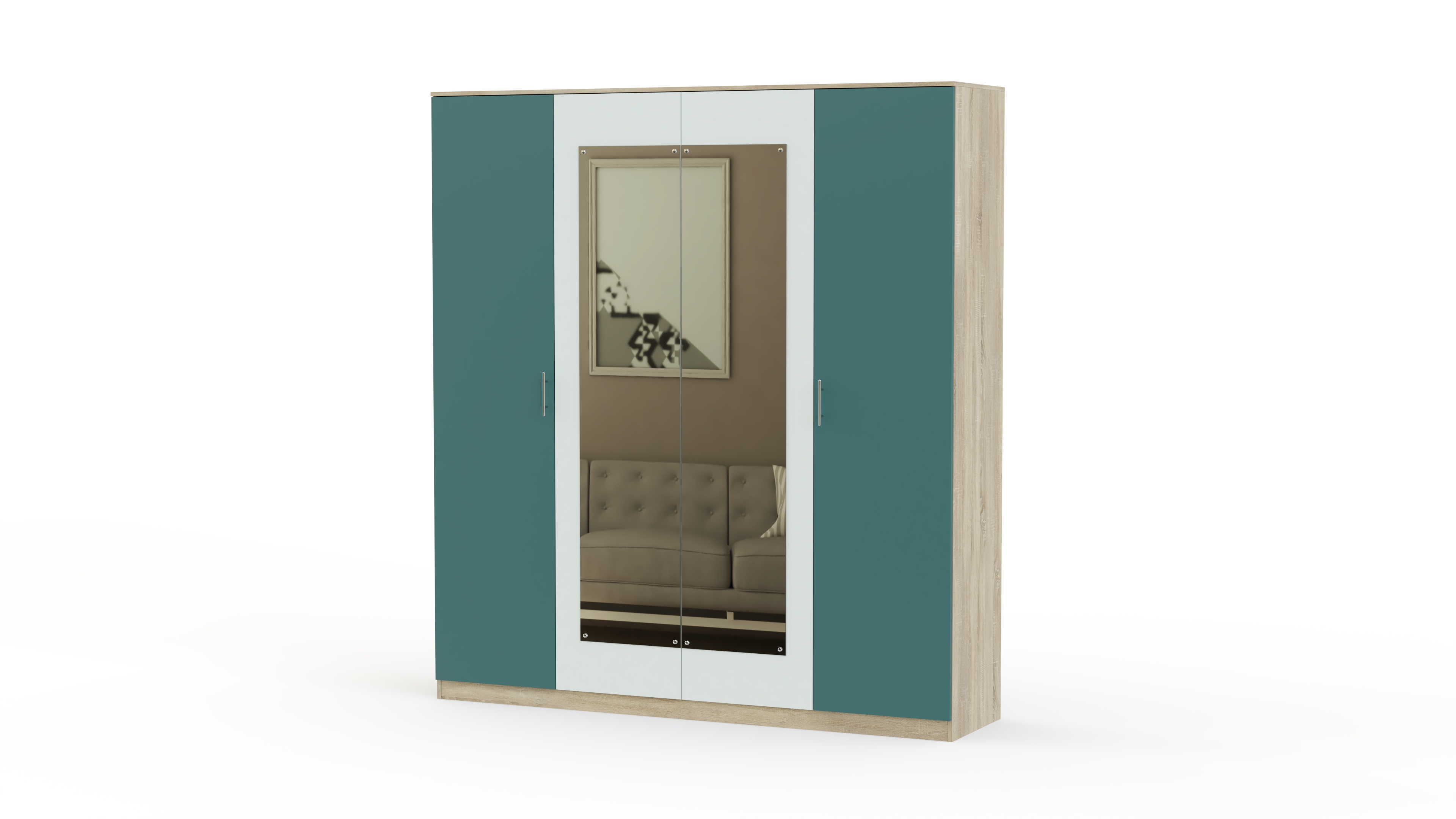 Спальня Варна 1 BMS – солидная стильная модель, покорит сердца тех, кто ценит практичность и является поклонником шикарных вещей. Яркие контрастные элементы темного дуба сонома и белых вставок успешно дополняют общую картину, делая спальню любимой и желанной. В комплекте большой шкаф, впечатляющий габаритами, огромными зеркальными поверхностями, солидный комод и двуспальная кровать с нарядными прикроватными тумбочками. Вытянутые металлические ручки необычайно удобны, органично вписываются в лаконичную композицию. Предлагаем купить у нас замечательную спальню Варна 1 BMS по привлекательной цене в режиме онлайн. На свое усмотрение вы можете скорректировать предлагаемые параметры элементов гарнитура.