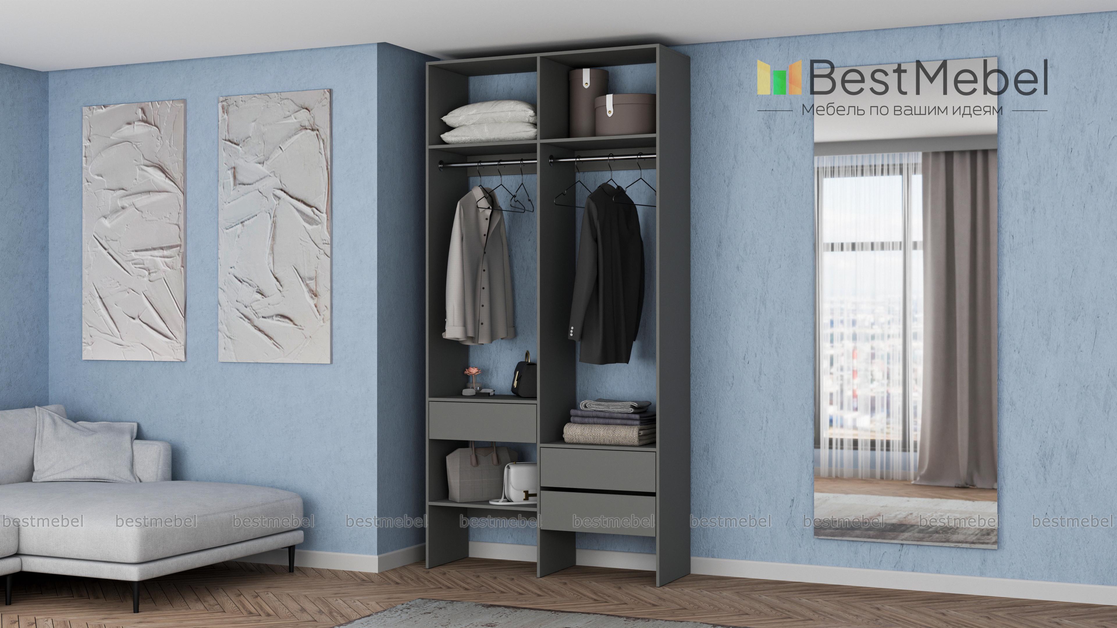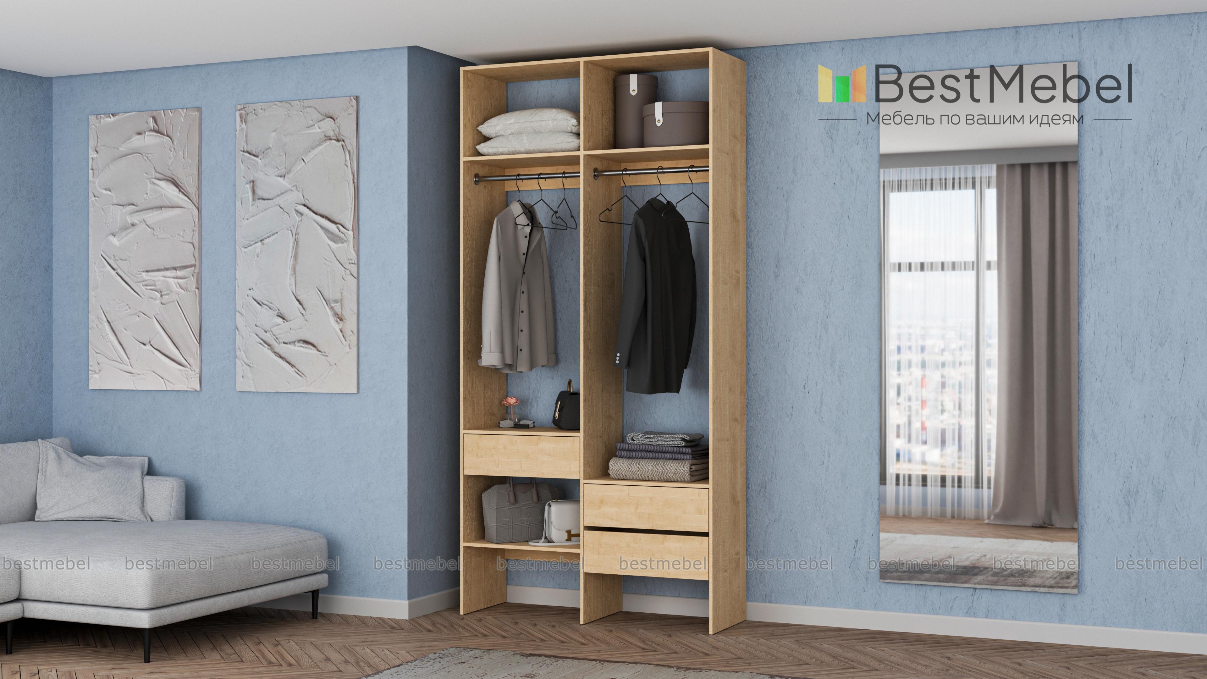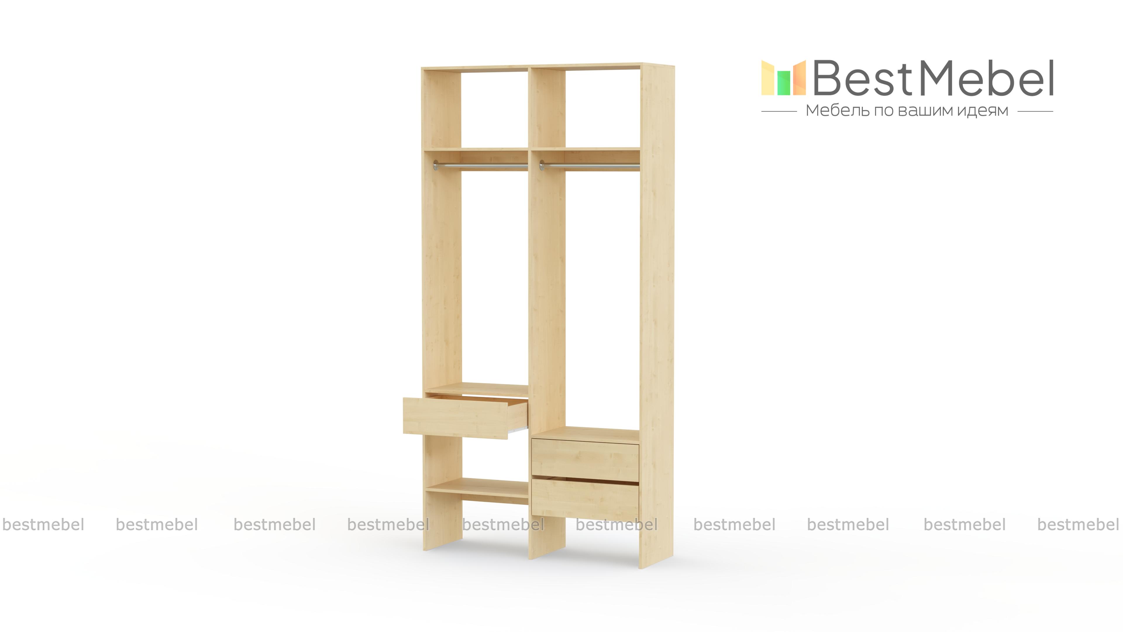 Стеллаж для одежды Мирта 43 BMS будет уместен в прихожей, гардеробной комнате, небольшой спальне. Открытый и негромоздкий стеллаж в светлом оттенке — отличная альтернатива шкафу. Конструкция из двух отделений со штангами, полок и трех выдвижных ящиков, расположенных на разной высоте, обеспечивает порядок и удобство доступа к вещам. Купить стеллаж для одежды Мирта 43 BMS в подходящем именно вам размере и цвете можно недорого на сайте нашего интернет-магазина.