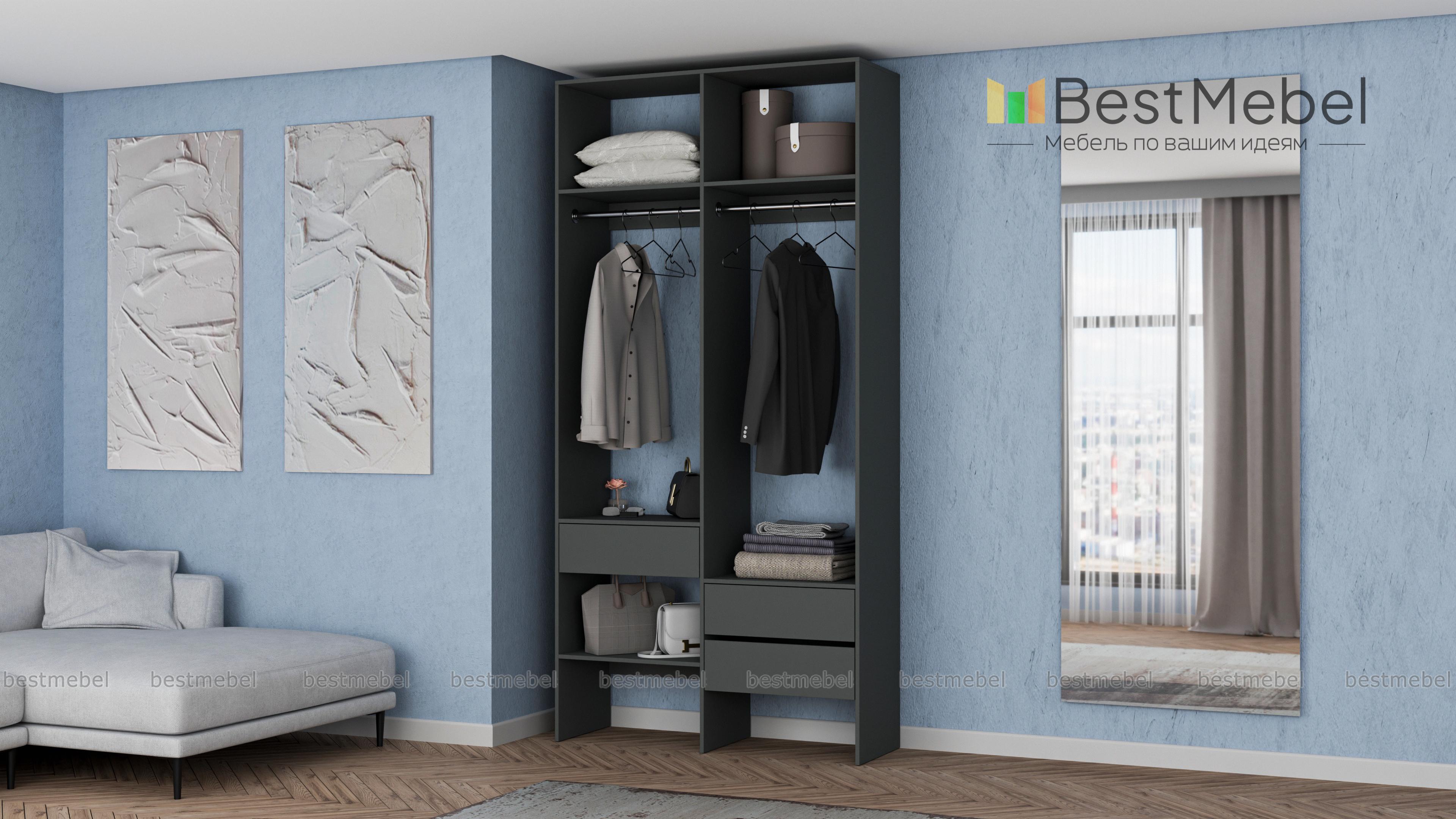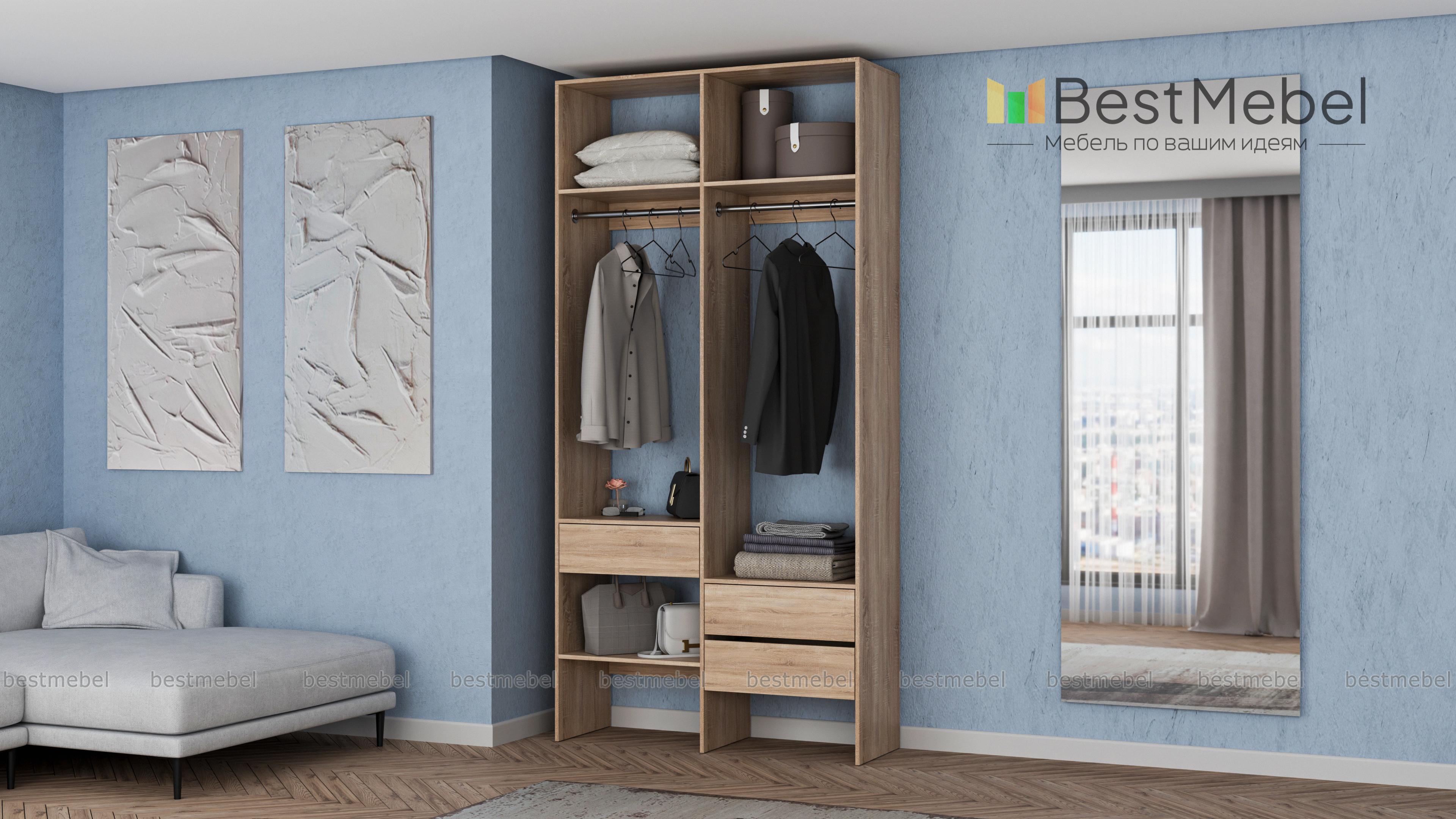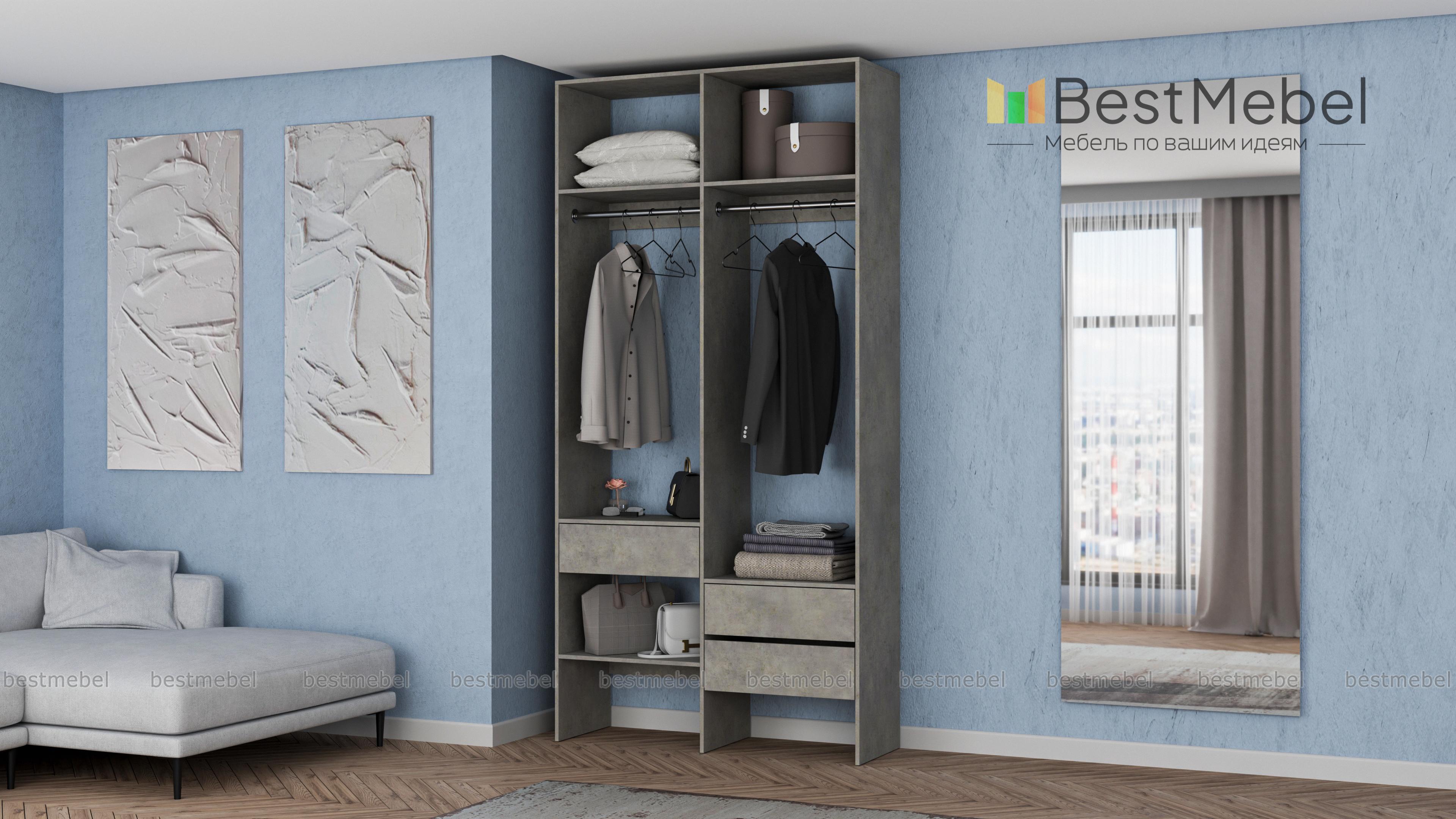 Стеллаж для одежды Мирта 43 BMS будет уместен в прихожей, гардеробной комнате, небольшой спальне. Открытый и негромоздкий стеллаж в светлом оттенке — отличная альтернатива шкафу. Конструкция из двух отделений со штангами, полок и трех выдвижных ящиков, расположенных на разной высоте, обеспечивает порядок и удобство доступа к вещам. Купить стеллаж для одежды Мирта 43 BMS в подходящем именно вам размере и цвете можно недорого на сайте нашего интернет-магазина.