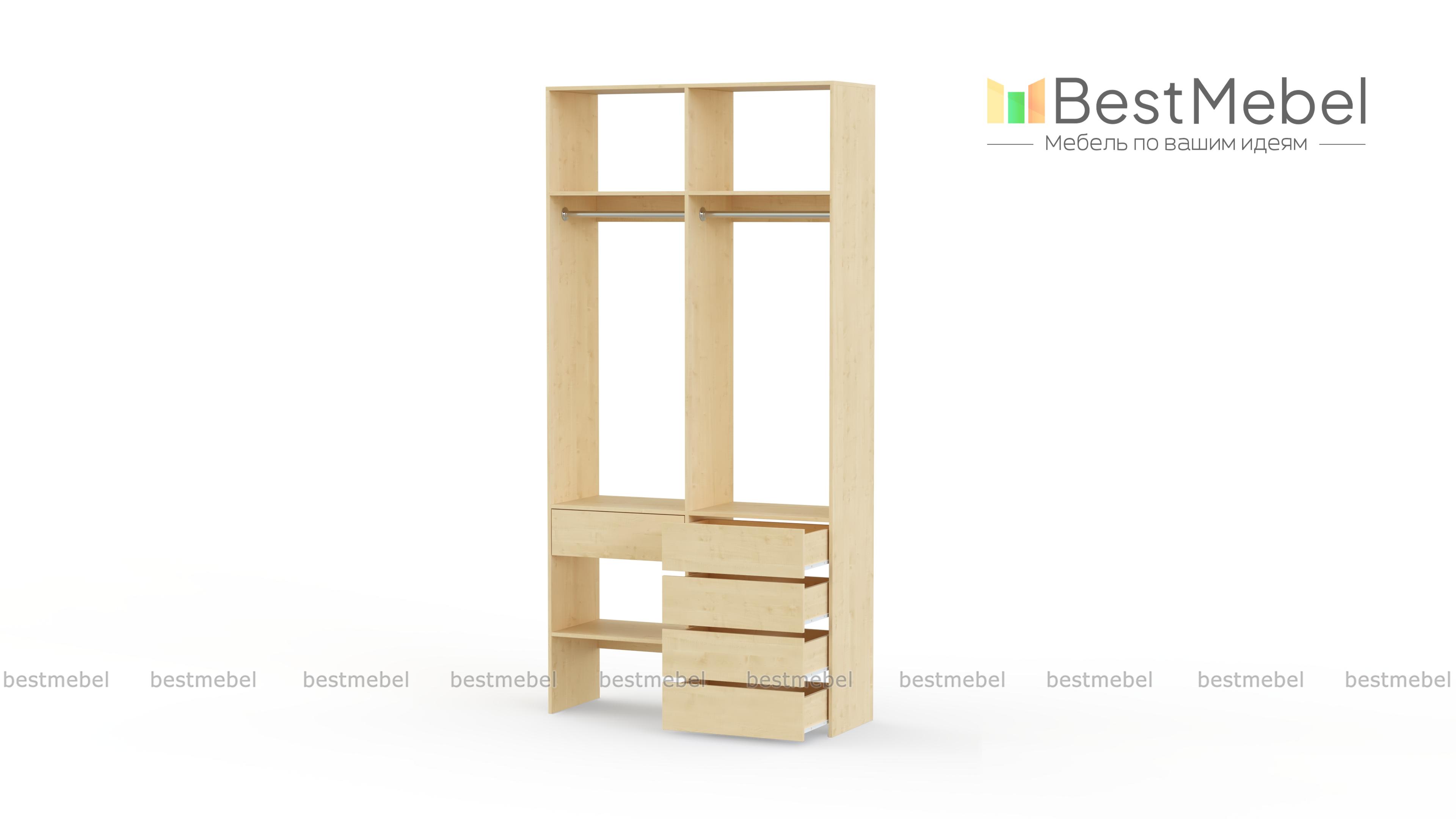 Стеллаж для одежды Мирта 46 BMS — стильный и функциональный, имеет удобную конфигурацию. Две штанги, полки на разной высоте и пять выдвижных ящиков максимально эффективно используют небольшое пространство. Двухсекционный стеллаж из прочной ламинированной ДСП прекрасно подходит для малогабаритных помещений, легко сохраняя порядок. Купить стеллаж для одежды Мирта 46 BMS в необходимом размере и любом оттенке из нашего каталога вы сможете на сайте интернет-магазина.