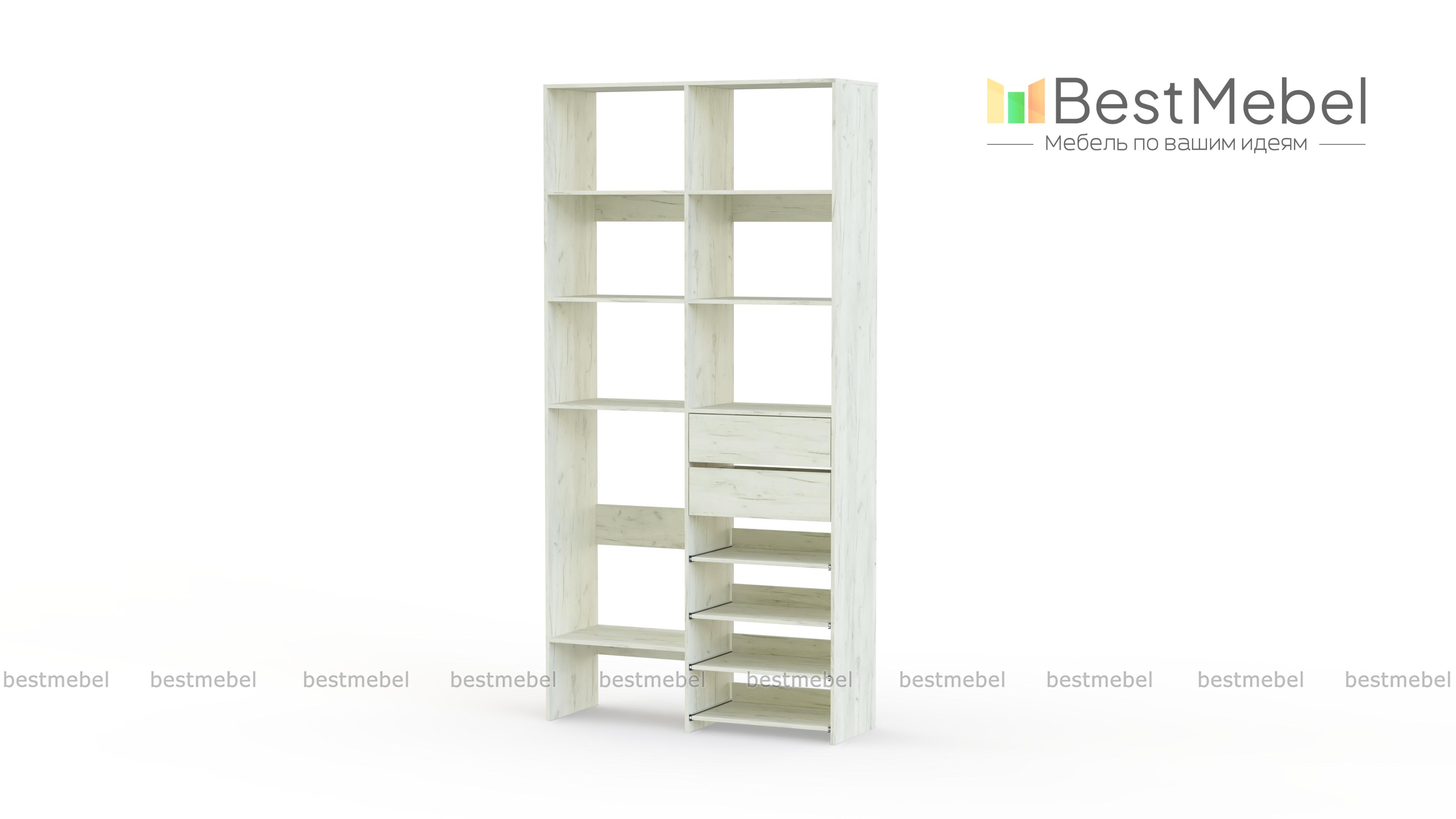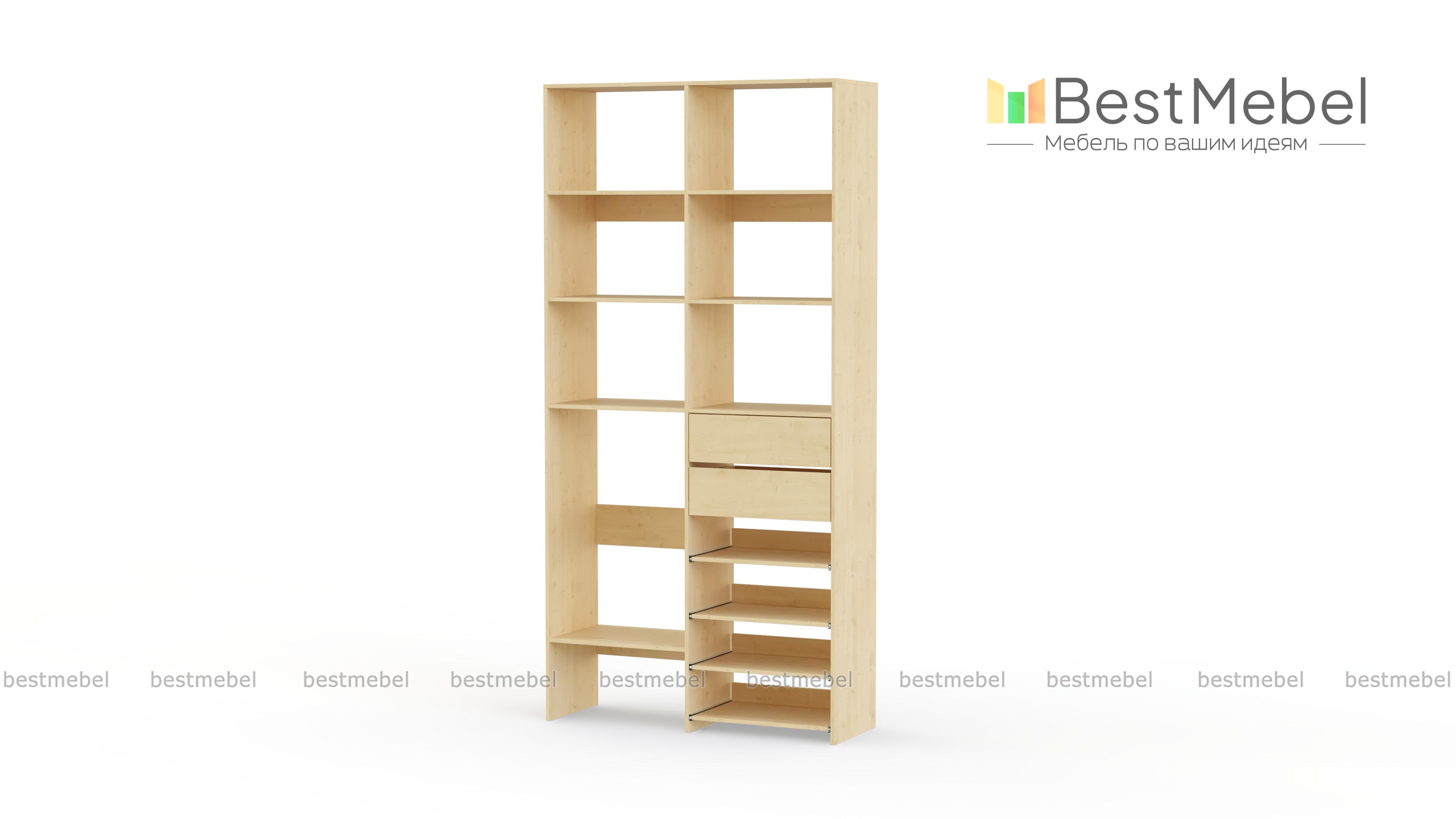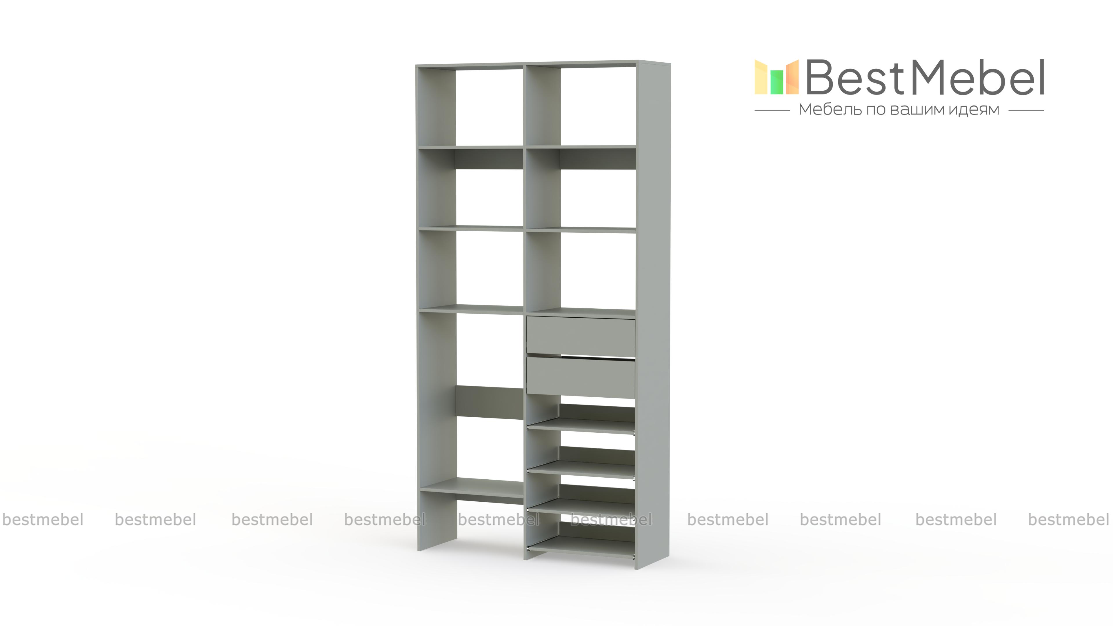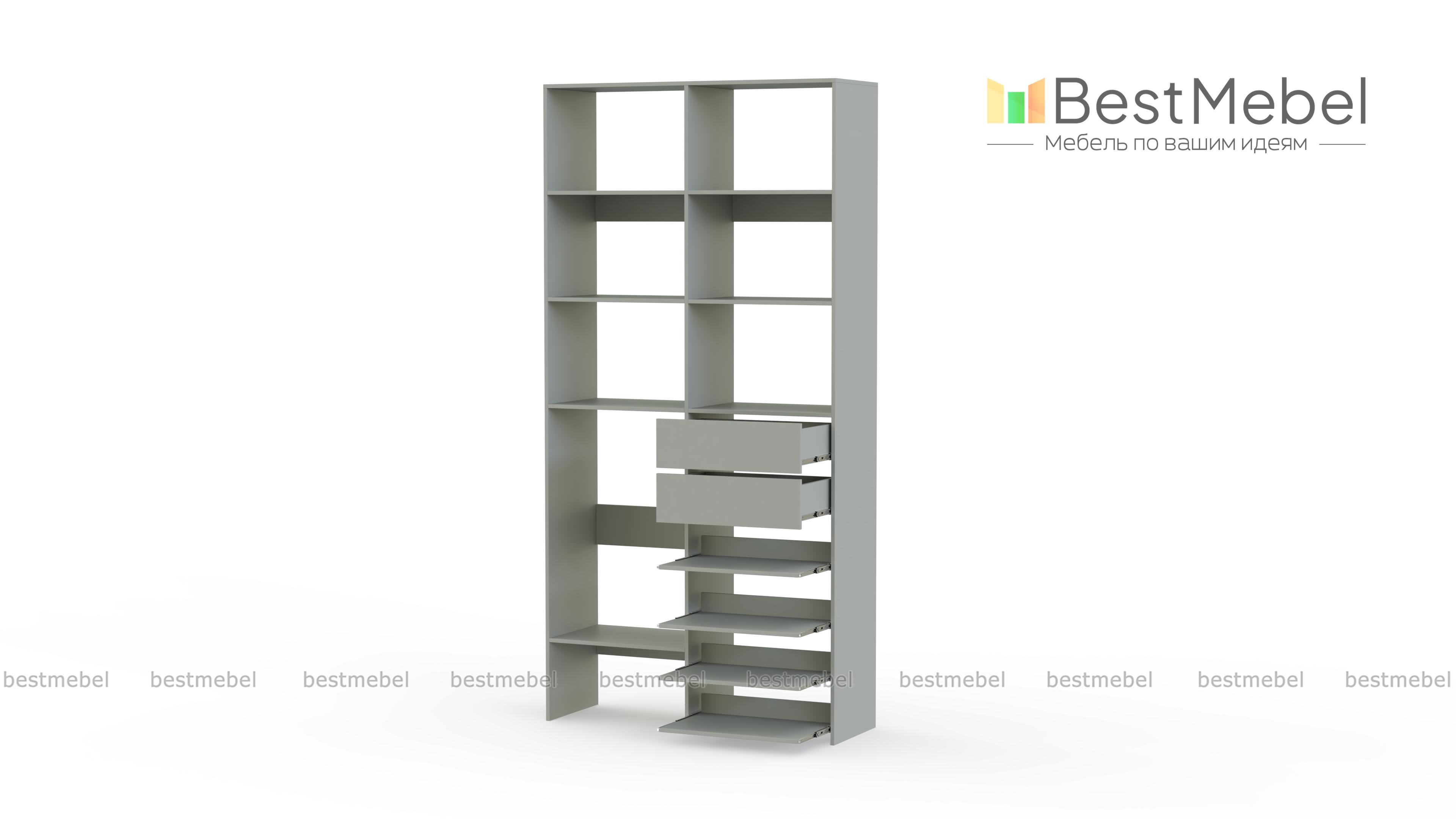 Стеллаж для одежды Мирта 86 BMS поможет вам легко избавиться от беспорядка. Секции разных размеров, два выдвижных ящика и четыре полки на направляющих прекрасно подойдут для хранения сложенной одежды, мелкого трикотажа, корзин и коробок с вещами. Благодаря скромным габаритам стеллаж легко поставить в нишу, разместить в маленькой прихожей или гардеробной. Купить стеллаж для одежды Мирта 86 BMS с выбором цвета и размеров приглашаем в наш интернет-магазин.