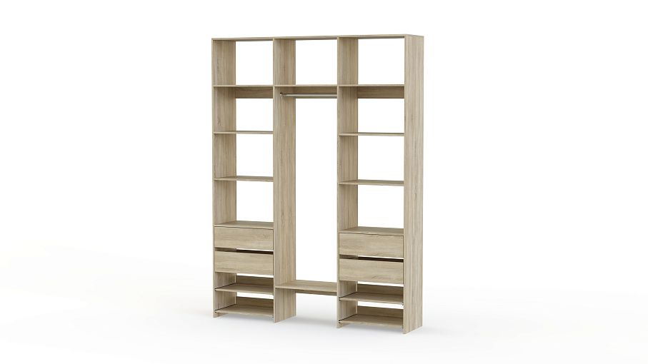 Стеллаж для одежды Мирта 94 BMS сделает удобным хранение различных предметов гардероба. Легко доставать вещи помогут вам открытые боковые и верхние секции, платяная штанга, две пары ящиков и выдвижные панели. Ламинированная плита в природном оттенке — экологичный современный материал, выдерживающий значительные нагрузки. Купить стеллаж для одежды Мирта 94 BMS вы сможете в нашем интернет-магазине, подобрав размеры и гармонирующий с вашим интерьером оттенок.