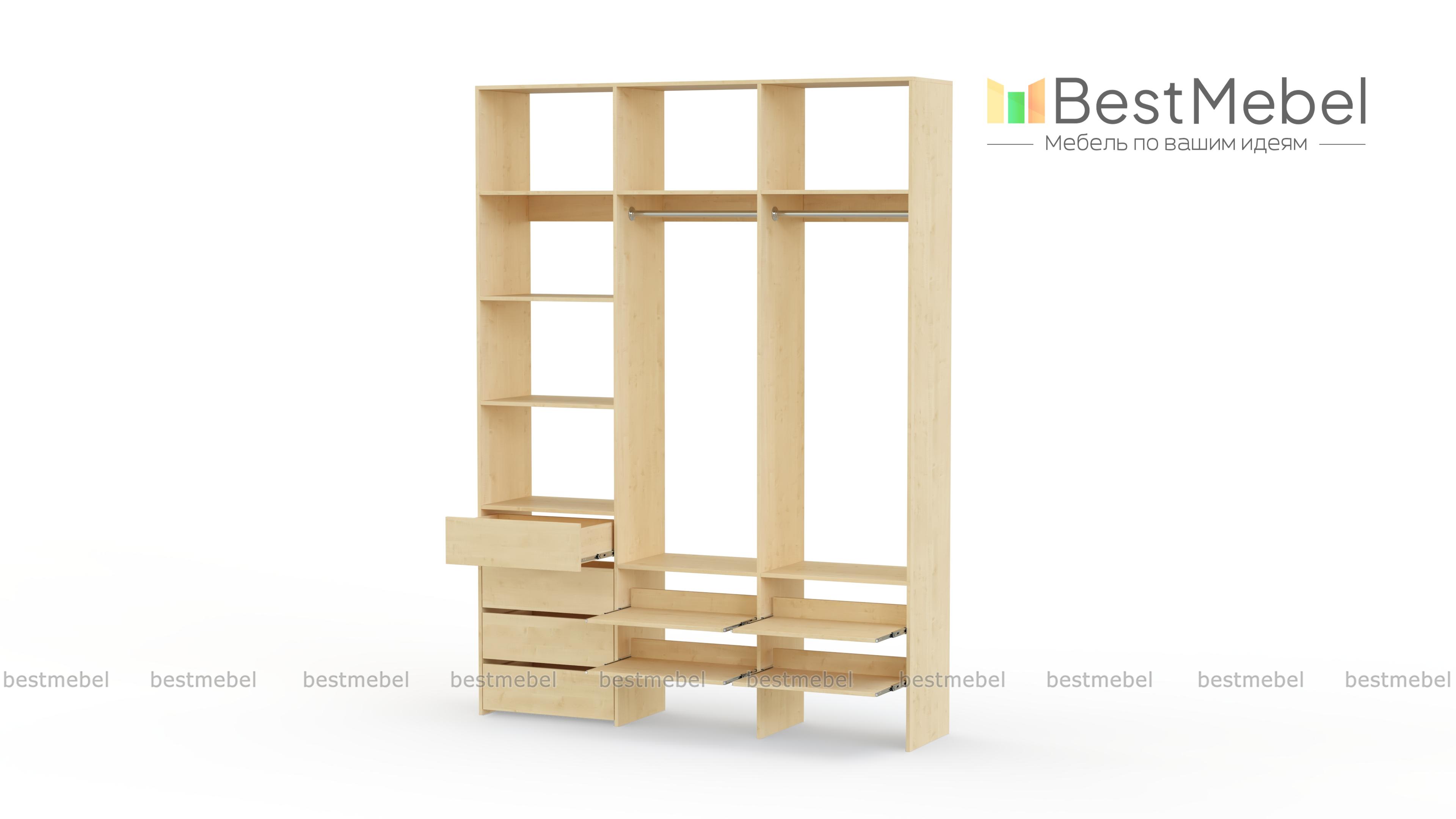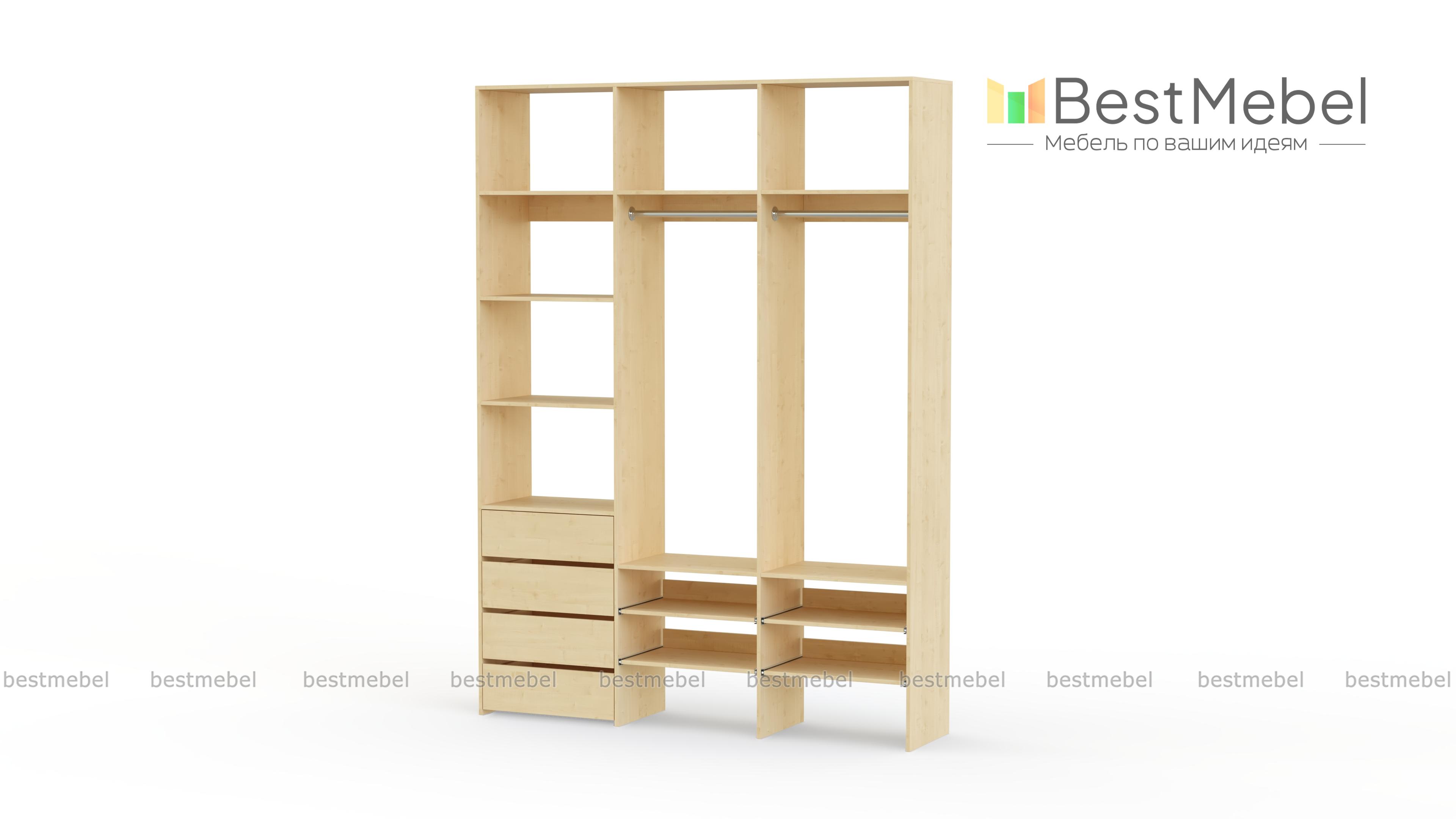 Стеллаж для одежды Мирта 99 BMS помогает сохранить порядок в вашей прихожей или гардеробной. Открытая конструкция укомплектована двумя одежными штангами, бельевыми и выдвижными полками, а также четырьмя ящиками для мелочей. Материал изготовления — ламинированная плита древесного оттенка, которая выдерживает большие нагрузки. Купить стеллаж для одежды Мирта 99 BMS в необходимом вам размере и цвете вы сможете купить на сайте нашего интернет-магазина.