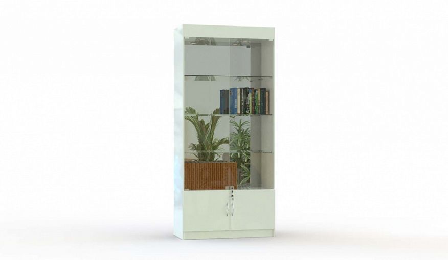 Торговый стеллаж Кассиопея 5 BMS – это комбинированная модель с зеркальной задней стенкой, которая поможет выигрышно представить товары. В основании модели располагается глухое распашное отделение с замком, а в верхней части – три стеклянных полки со встроенной подсветкой. Прозрачные дверцы обеспечат содержимому полок отличный обзор, при этом защитив предметы от пыли и случайного падения. Купить торговый стеллаж Кассиопея 5 BMS вы сможете в нашем интернет-магазине, подобрав фурнитуру и цвет по каталогу.