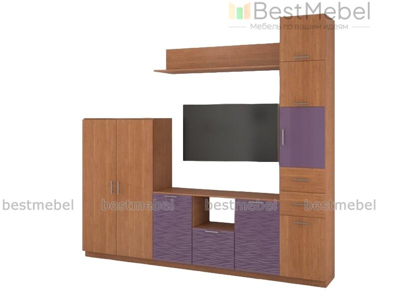 Стенка Вельвет 4 BMS – модульная композиция для светлого и визуально легкого современного интерьера. Поклонникам минимализма придутся по душе простота формы и высокая функциональность. Комплект оборудован высокой комбинированной колонкой, вместительной тумбой под ТВ, распашным комодом и навесной открытой полкой. Особенно эффектный вид стенке придают разноуровневость и сочетание древесных тонов с темными фасадами, декорированными рельефным рисунком. Купить стенку Вельвет 4 BMS, стильную и надежную, вам поможет наш интернет-магазин.