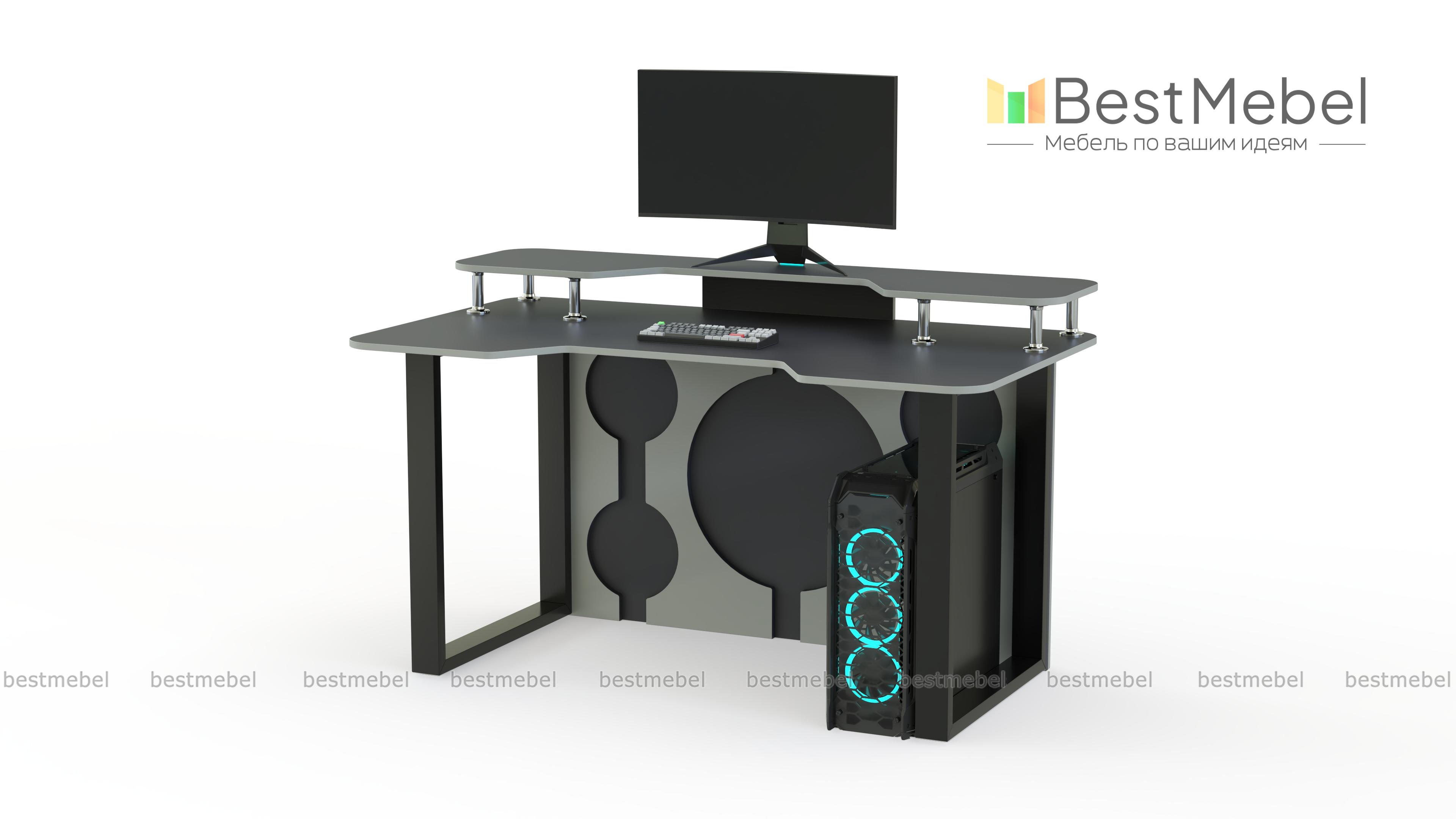 Геймерский стол Брук тип 9 BMS с рамочными опорами и декоративными вырезами задней стенки идеально вписывается в интерьеры стиля хай-тек или индастриал. Компактный, легкий и устойчивый, стол оборудован просторной столешницей с эргономичным вырезом. Разместить на удобной высоте монитор и современную периферию позволит надстройка на хромированных опорах. Купить геймерский стол Брук тип 9 BMS вы сможете в нашем интернет-магазине с подбором цвета по каталогу.