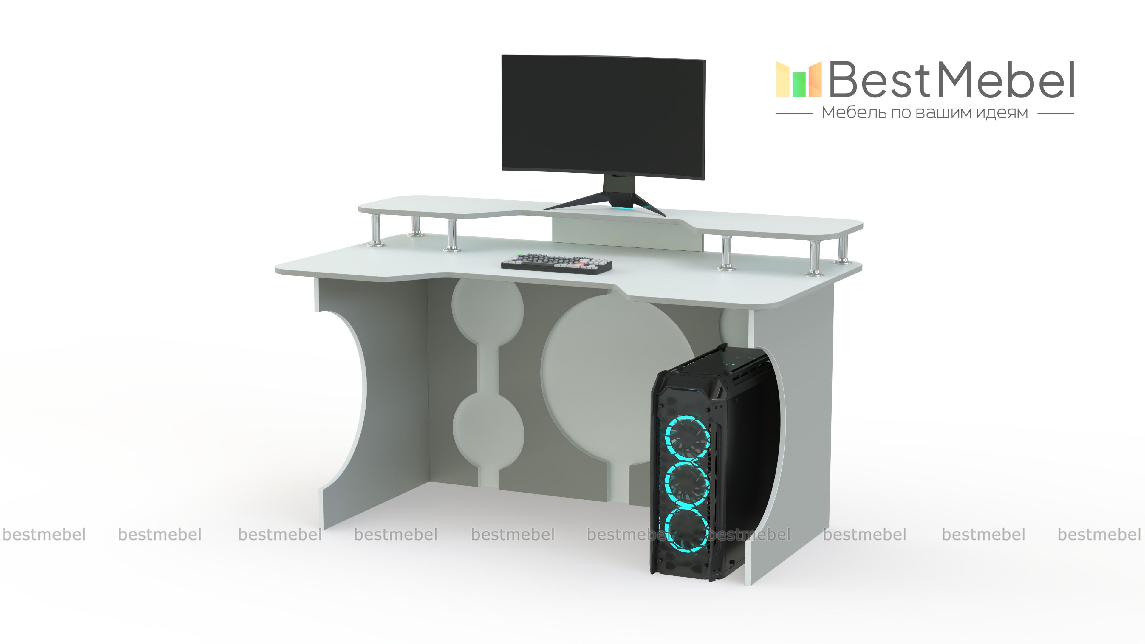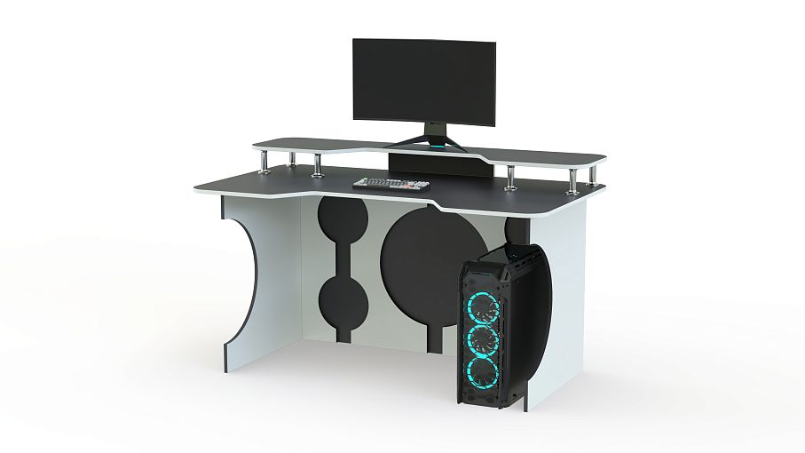 Игровой стол Европа 11 BMS сочетает в себе креативность дизайна с эргономичностью. Стильная модель в черно-белой гамме декорирована круглыми вырезами и не смотрится громоздко. Необходимую поддержку локтевой зоны обеспечит столешница с трапециевидным вырезом переднего края, а освободить рабочую поверхность поможет надстройка для монитора, колонок и прочих периферийных устройств. Купить игровой стол Европа 11 BMS приглашаем в наш интернет-магазин с возможностью изменения размеров.