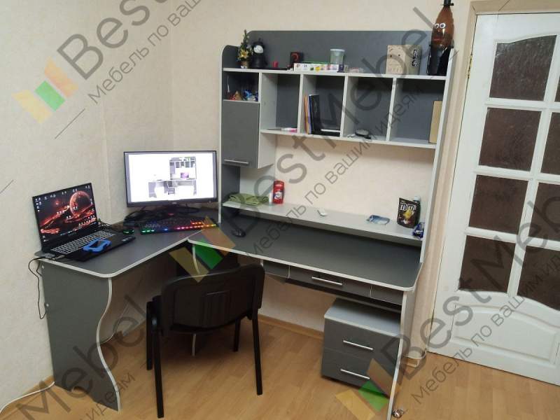 Лучший стол, который нашел для себя на сайте. При заказе попросил его видоизменить под себя. Кромка 0,4 добавил, цвет дуб молочный, цвет кромки Орех Гварнери. Ширину основного стола увеличил до 1100мм, ширину доп стола уменьшил до 300мм. Верхотуру сделал шириной в оба стола. Ящик на верхотуре поднял вровень с остальными полками. Выдвижной ящик под столом убрал, добавил туда выдвигающую полку для клавиатуры. Плюс ответстия для проводов. Сборщик собрал за час. Получился отличный стол, идеально под себя.