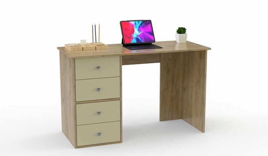 Стол письменный Пьеро 19 BMS выгодно отличается компактными размерами, надежностью, простым и оригинальным дизайном. Практичный вариант для работы или учебы, стол оборудован прямоугольной столешницей на широкой угловой опоре и тумбой с четырьмя выдвижными ящиками для хранения канцелярских принадлежностей. Визуально легкое сочетание теплых крафтовых тонов и пастельного оттенка придадут помещению ощущение уюта. Купить стол письменный Пьеро 19 BMS приглашаем на сайт нашего интернет-магазина с выбором цвета по каталогу.