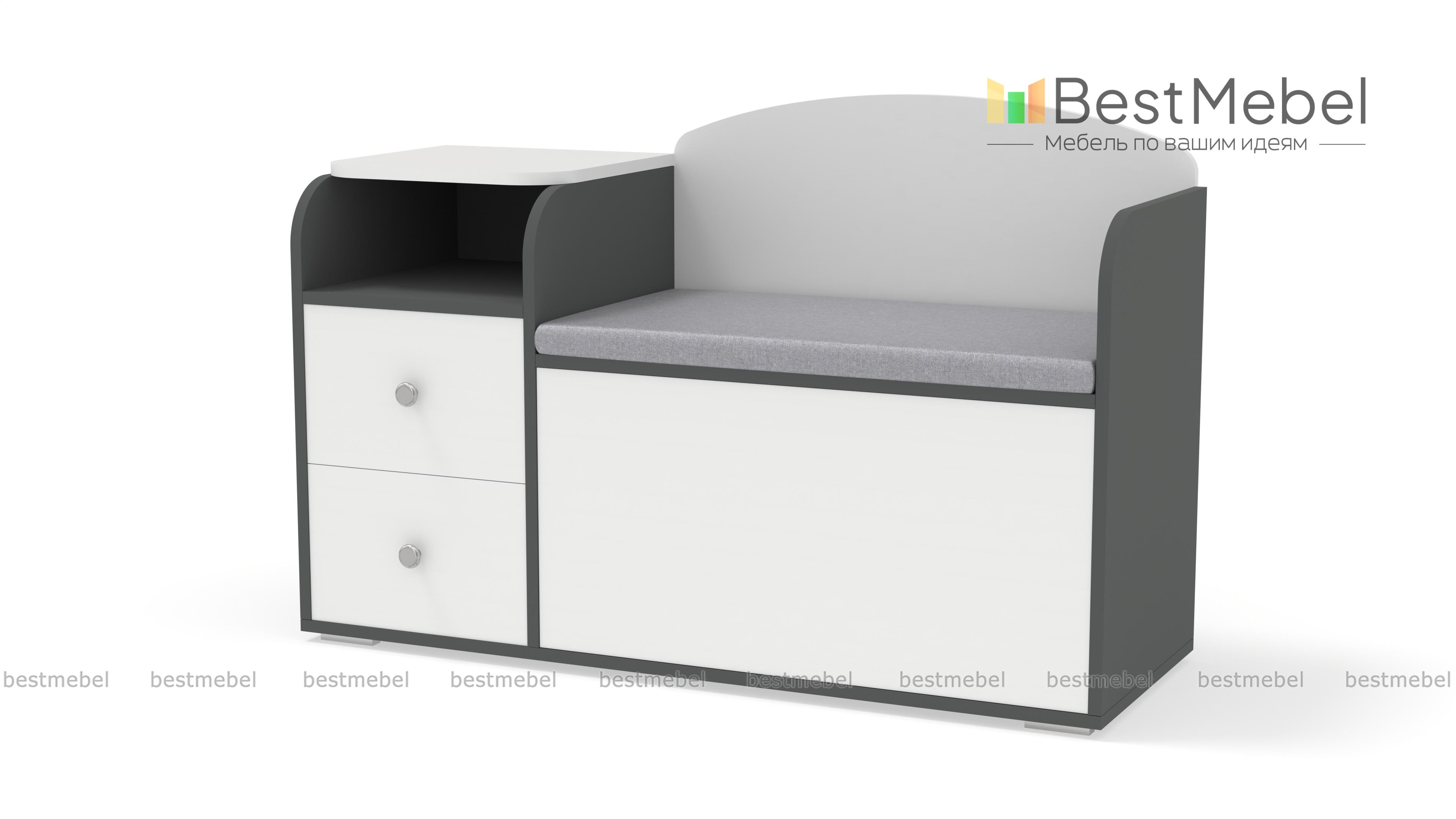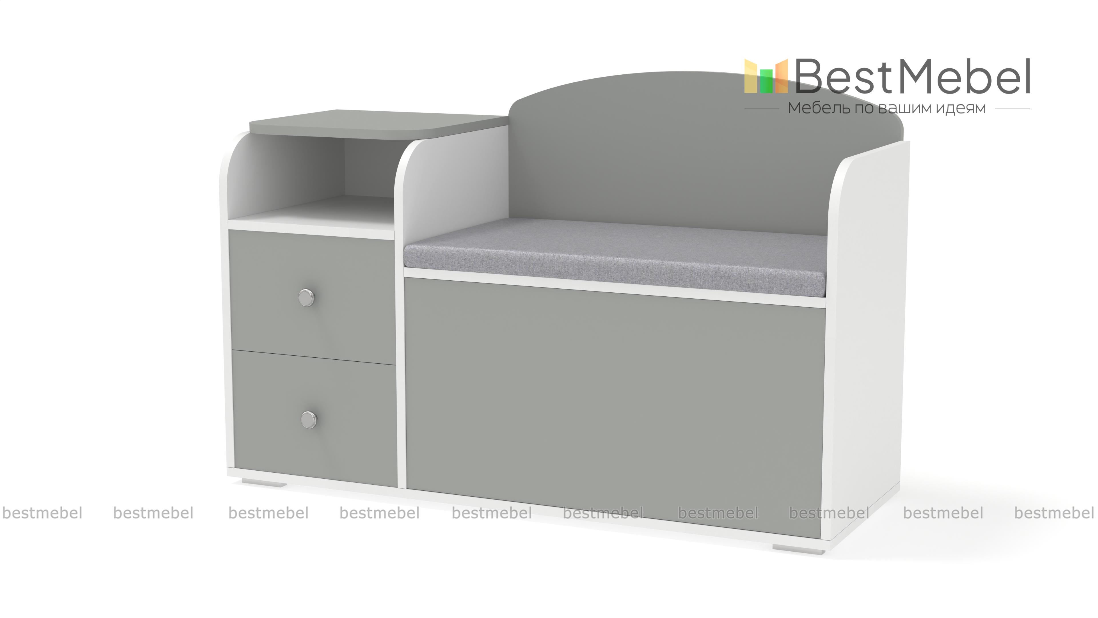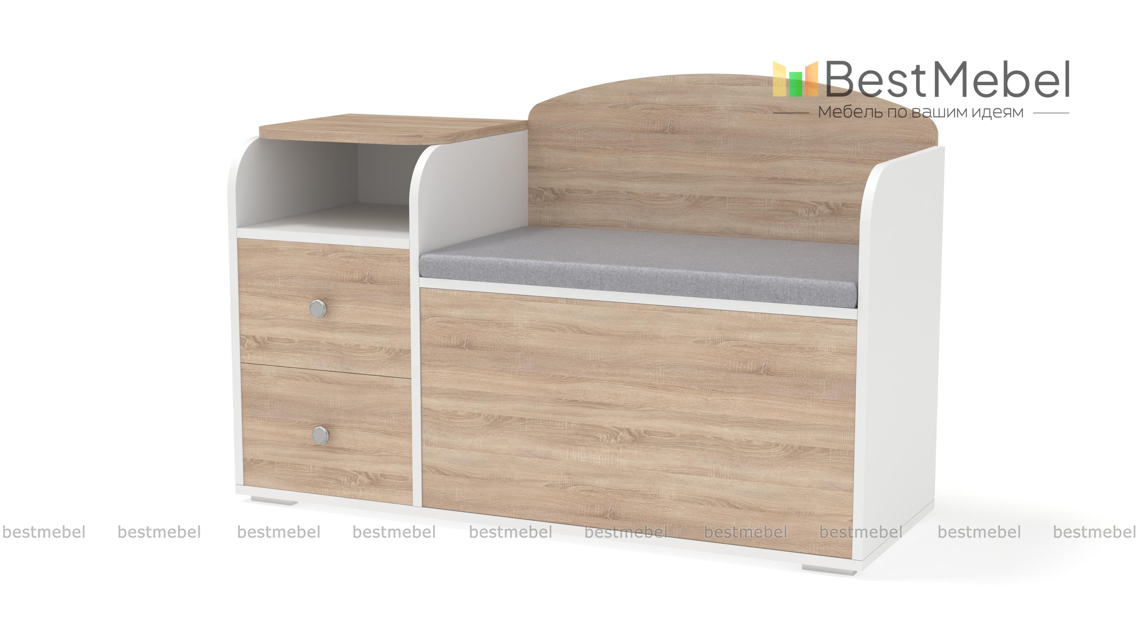 Обувница с сиденьем Домовой-2-40 BMS выполнена в нейтральных светлых оттенках, безопасно скруглена по краям и станет частью комфортного, уютного пространства. Модель объединила тумбу с двумя выдвижными ящиками и нишей для мелочей и просторное обувное отделение с откидной крышкой. Мягкая тканевая обивка превращает обувницу в удобную банкетку. Купить обувницу с сиденьем Домовой-2-40 BMS, которая поможет оптимизировать хранение сезонной обуви и аксессуаров, вам поможет наш интернет-магазин.