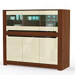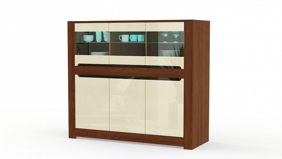 Тумба-витрина Росси-2 BMS будет эффектно смотреться в интерьере современной гостиной. Комбинированная модель выполнена в сочетании насыщенных оттенков под массив дерева и ванильного глянца, а полки выделены светодиодной подсветкой. Тумба оборудована широкой столешницей, на которой смогут разместиться важные мелочи и предметы декора, и распашными отделениями – глухими и застекленными. Купить тумбу-витрину Росси-2 BMS приглашаем в наш интернет-магазин по выгодной цене.