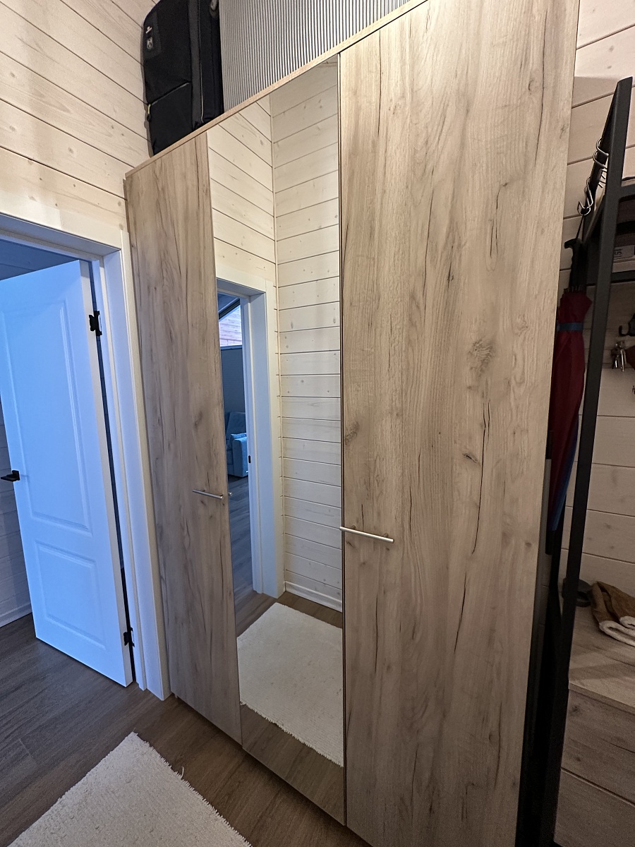 Заказ 00000345090, шкаф распашной 1400х2300х400. Спасибо за шкаф, понравился цвет фасадов, качество тоже на высоте, достаточное количество полок. По поводу дизайна - мне показалось, что было бы удобнее, если бы ручки расположить вертикально, но это не критично. Для небольшой прихожей такой шкаф - отличное решение.