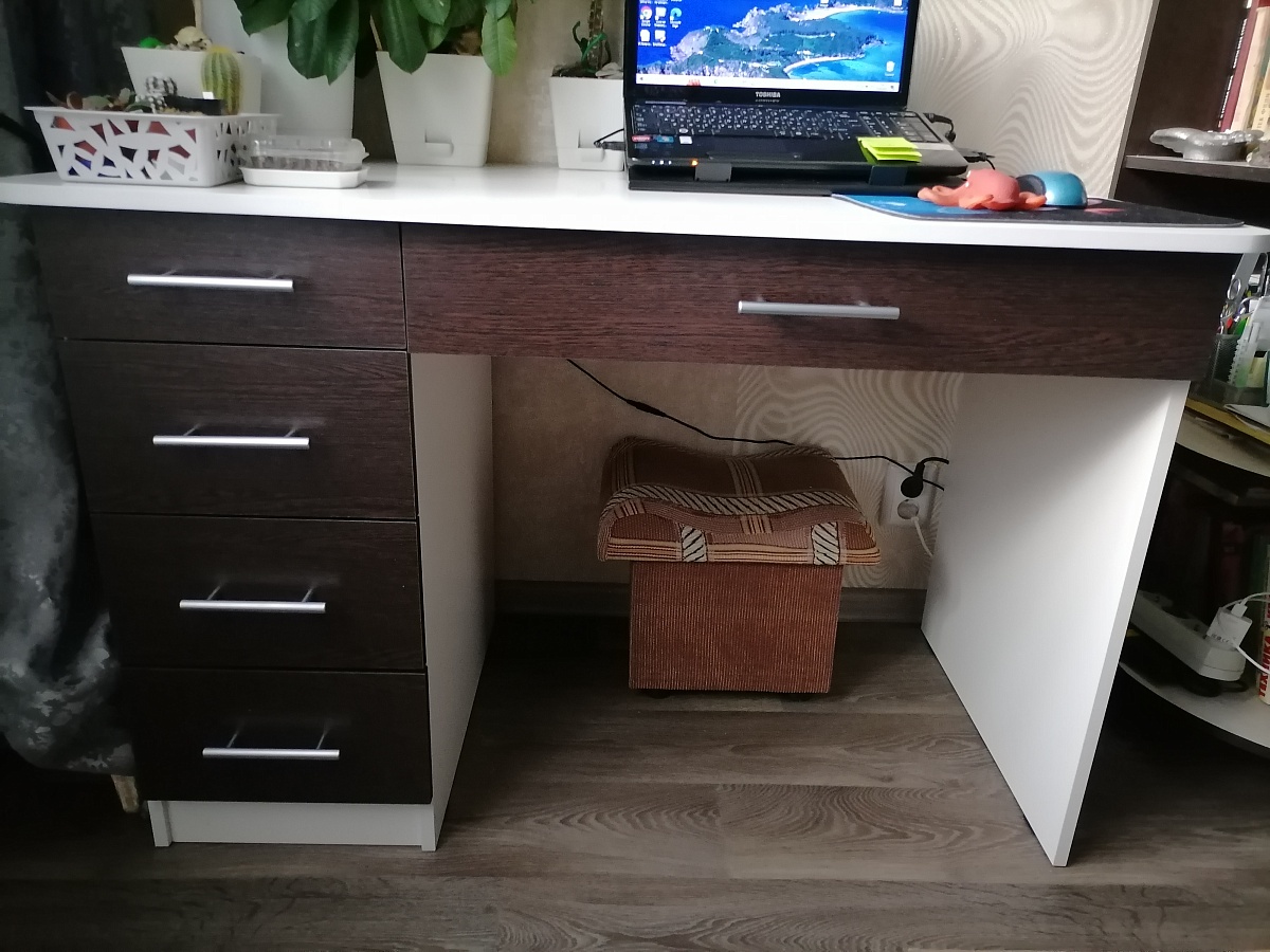 Заказ приняли в работу очень быстро. Доставили в обговорённые сроки. Прекрасное качество материалов, отличный крепёж, очень понятная инструкция для сборки.  Стол получился вместительный и уютный.