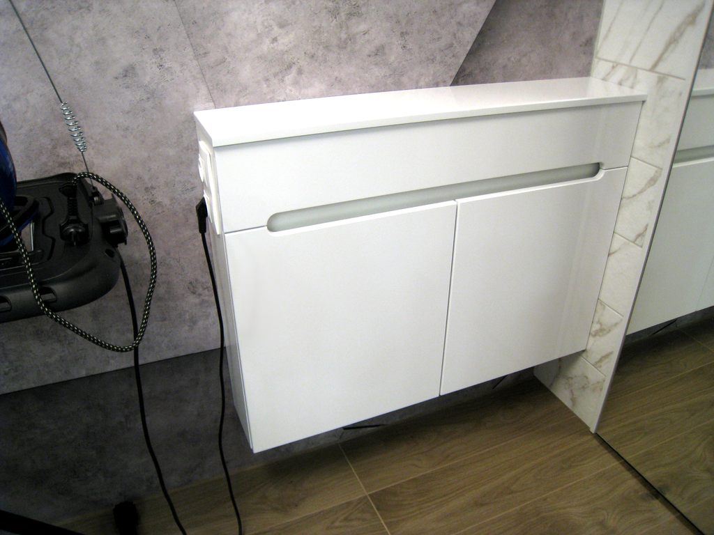 Заказ 00000913115, Тумба Марко Т-1 BMS (970х710х180). Тумба изготовлена по моим размерам, в моей комплектации. Фасады белый глянец лак с фрезеровкой "без ручек".  Петли Clip-On с доводчиком, на этом экономить вредно.В итоге хотел получить неглубокий навесной шкафчик нужного размера определенного дизайна, как во всей ванной.После согласования с менеджерами  и подтверждения по почте заказ пришел через 10 дней. Всё сделано точно, аккуратно, собрал и установил без проблем. Результат именно тот, что мне нужен, спасибо!Верхнюю панель дозаказывал.PS. Кстати, фрезеровка фасадов "без ручек" не ромбовидная, как в описании и на фото, а округлая, как на чертеже, что значительно симпатичней. Исправьте.