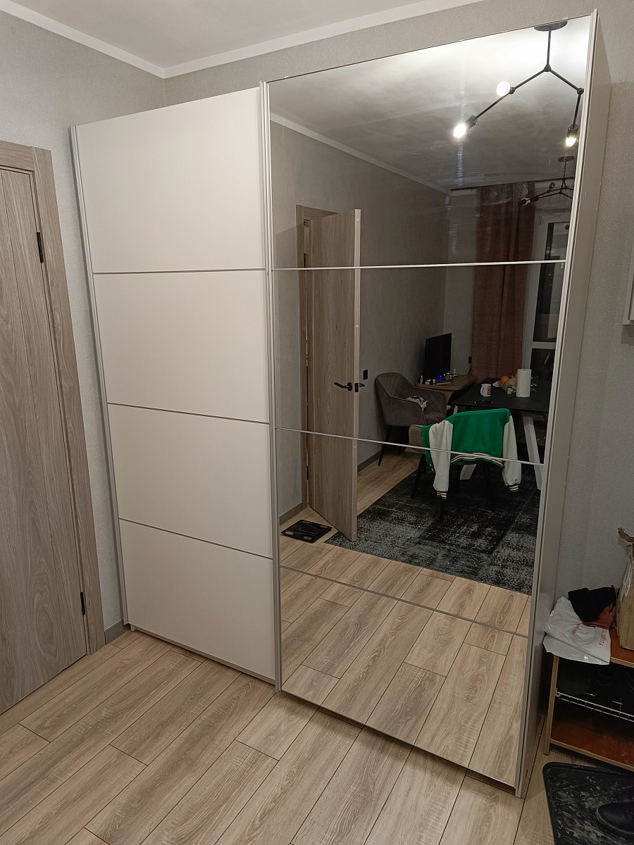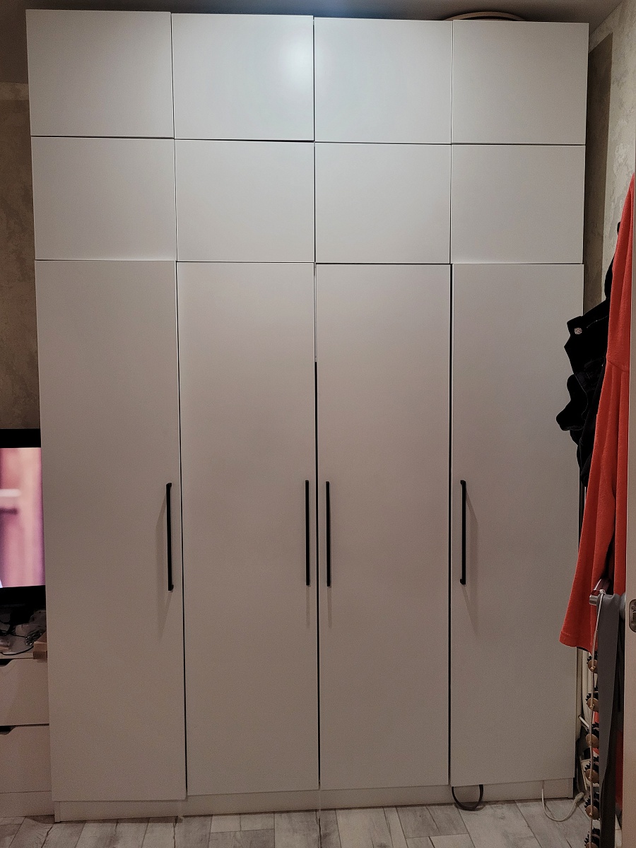 Заказ 00000916698, изделие ЭСКИЗ №00000916698 Шкаф-купе Пакс Мехамн Pax Mehamn 9 (1800х2210х560)Шкаф заказывал в середине декабря, думал не успеют привезти к новому году, а нет, все успели, сделали быстро, приехал тоже быстро. Собирал сам, все вышло удачно.Плюсы, быстро красиво, все целое без сколов и царапинИз небольших минусов фурнитура без доводчиков, и пластиковой нижней рельсы но ничего страшного, за свою цену топ. Рекомендую к покупке.