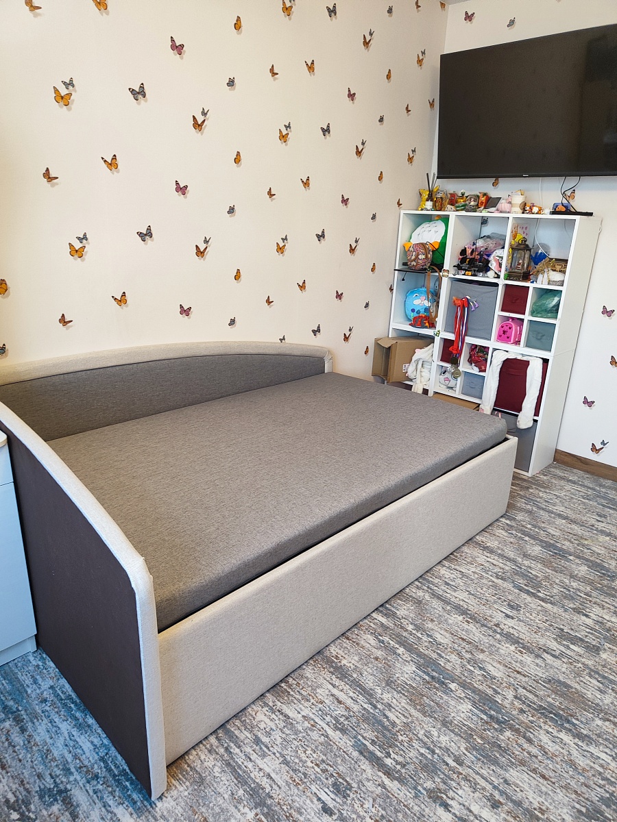 Кровать хорошая, цвета подбирала под цвет остальной мебели в комнате так же от компании Бест мебель. Массивная хоть и полуторка, шестиногая, с двойным дном. При желании туда можно что нибудь положить. Собирали сами по инструкции
