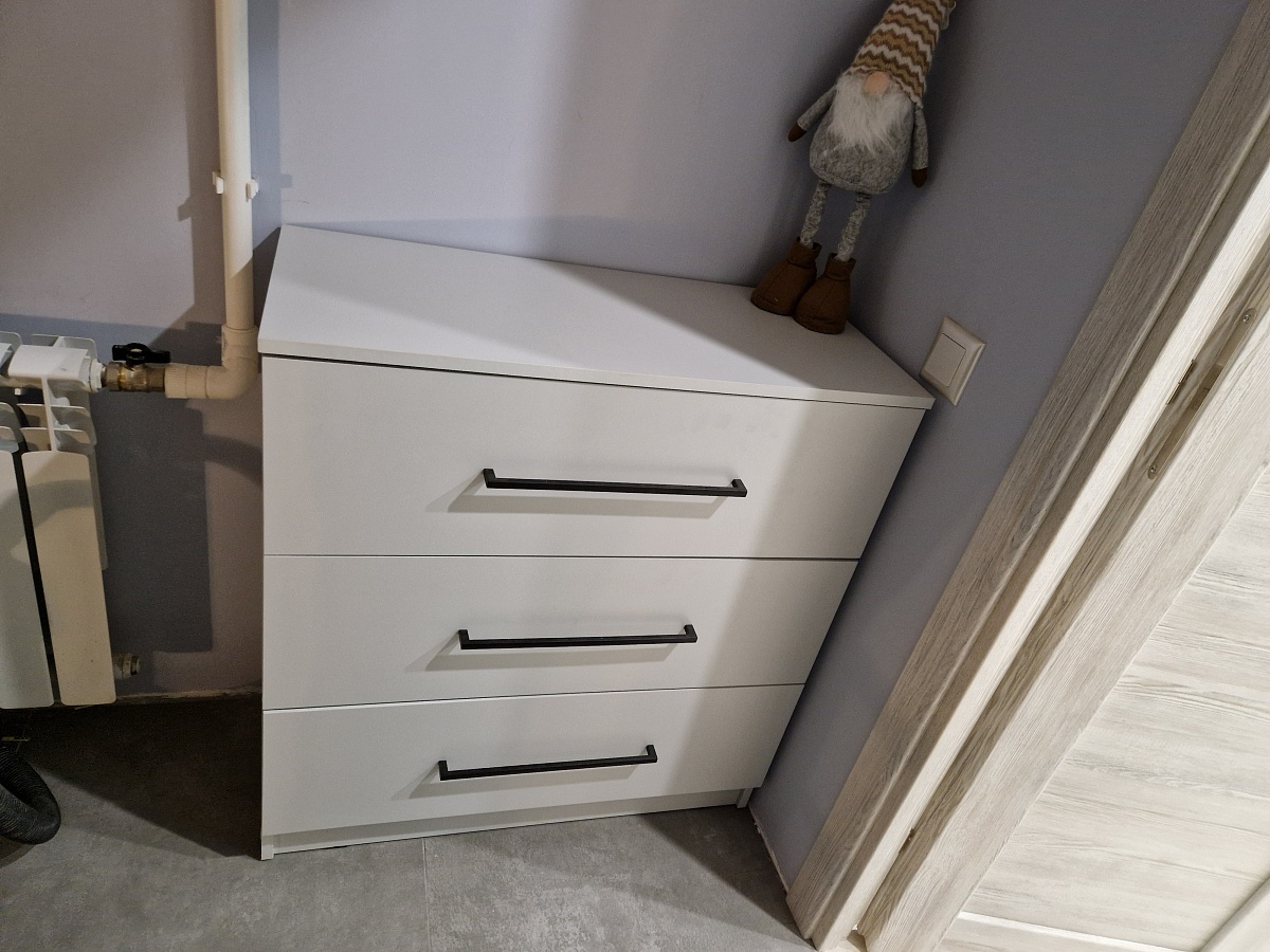 Заказ 00000867485. Приобретали комод. Нужен был длинный. Сайт очень удобный, можно выбрать и цвета и размеры. Понравилось, что есть возможность разного цвета корпуса и фасадов. Изготовили очень быстро, быстрее, чем по договорённости. Доставка вовремя. Качество хорошее, каждая деталь маркирована, легко собирается. Мы всем довольны, спасибо.