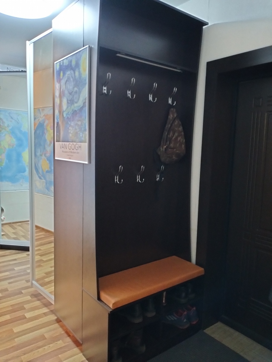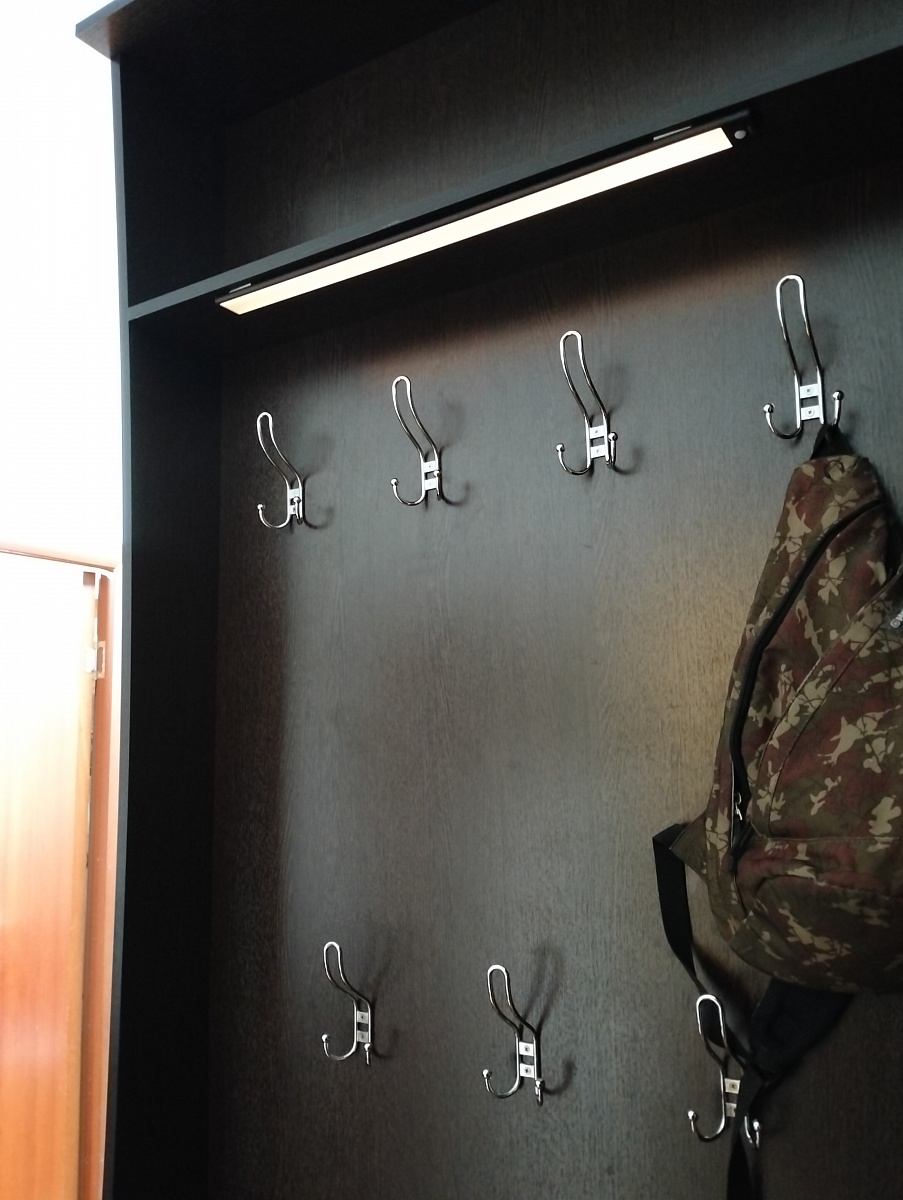 Заказали в компании BestMebel прихожую N00000856915 по индивидуальным размерам. У нас уже были шкафы и входная дверь цвета венге. Поэтому решили дополнить коридор прихожей цвета венге так, чтобы размеры соответствовали уже имеющимся шкафам, чтобы получилось состыковать. Ещё сделали мягкое сиденье нужного нам цвета. И вышло просто отлично! На фото видно, что прихожая от БестМебель идеально присоединилась к нашему шкафу. Эскиз по нашим размерам выполнили очень быстро, все согласования проходили по электронной почте, либо звонил менеджер из Москвы. Доставили день в день, как обещали, даже раньше на несколько часов, но это лучше, чем задержка.Мы присоединили к верхней части аюприхожец светильник на магнитах, что дополнительно создаёт уют.
