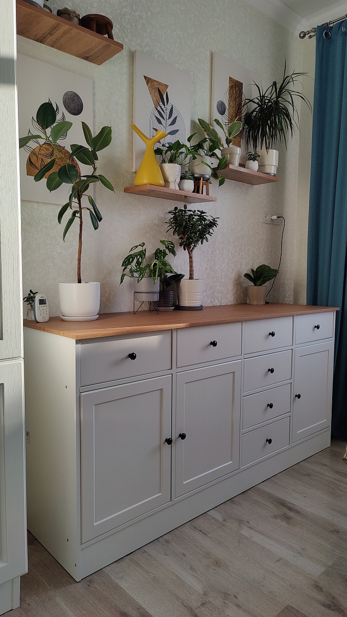 Сельма 2 - это лучшая тумба-витрина, представленная на сайте. Ей очень удачно был заменен старый сервант примерно таких же размеров, только он был на 25 мм ниже. Мне очень понравилась верхняя часть, где я разместил рюмки и чайный сервиз. К недостаткам я отношу неправильно просверленные отверстия на двух (из четырех) фасадов ящиков, пришлось дорабатывать самому.