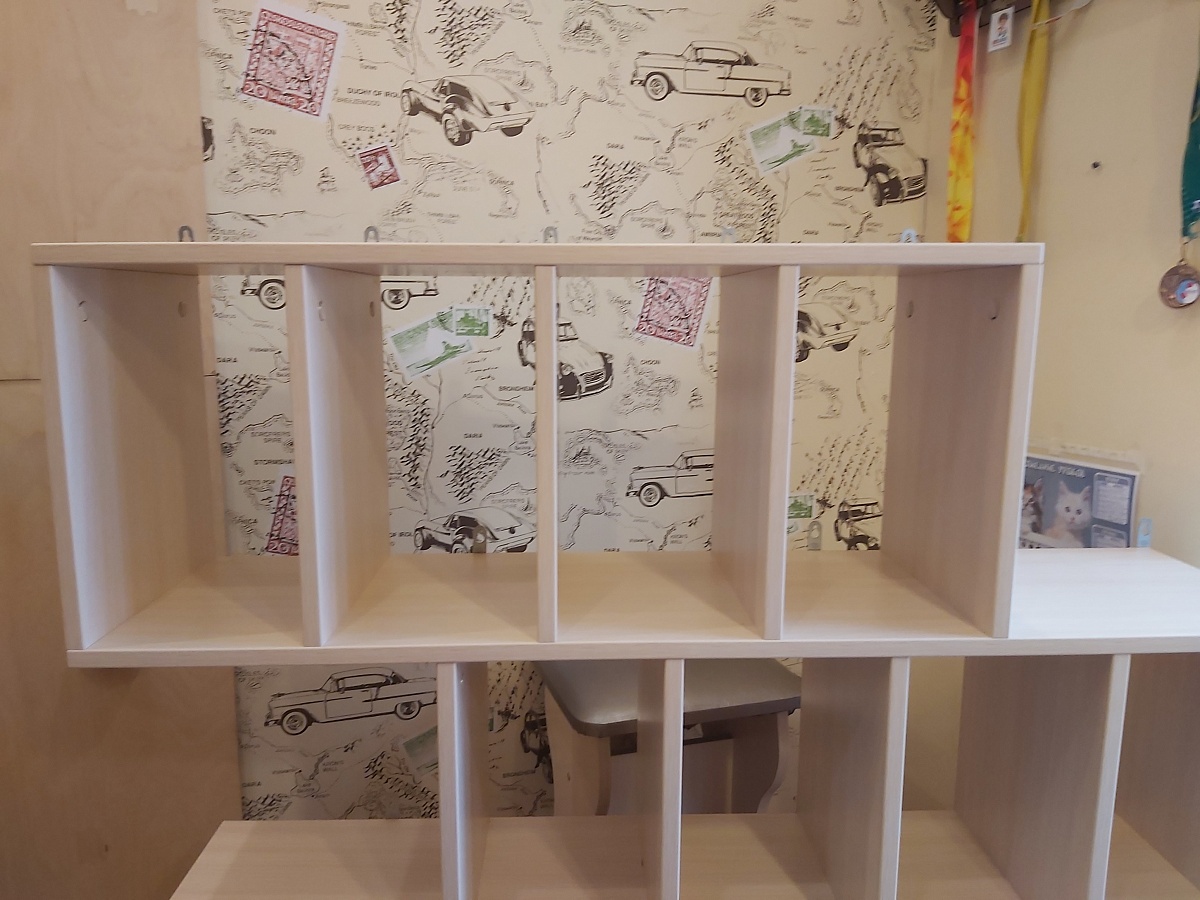 Хороший стеллаж. Берём уже второй такой. Благодаря индивидуальным размерам можно сделать любую высоту полок для любых книг. Покупкой довольны (Заказ №717362)