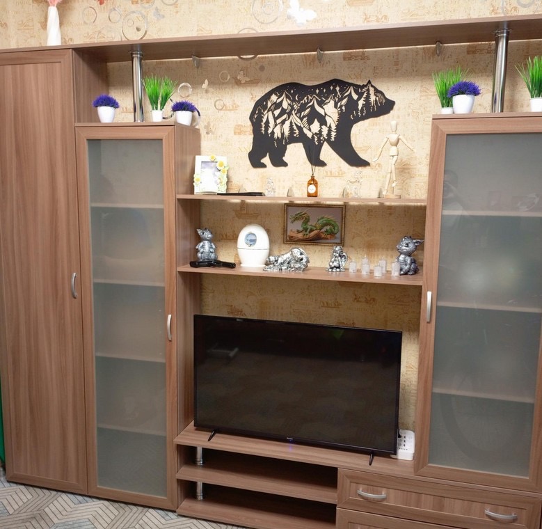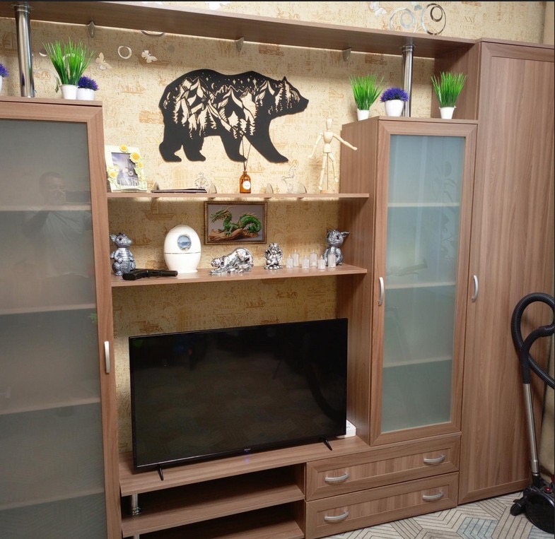 Стенка супер красивая, понравилась. Рекомендую. Доставка быстрая. Всё на месте. Минусов нет.