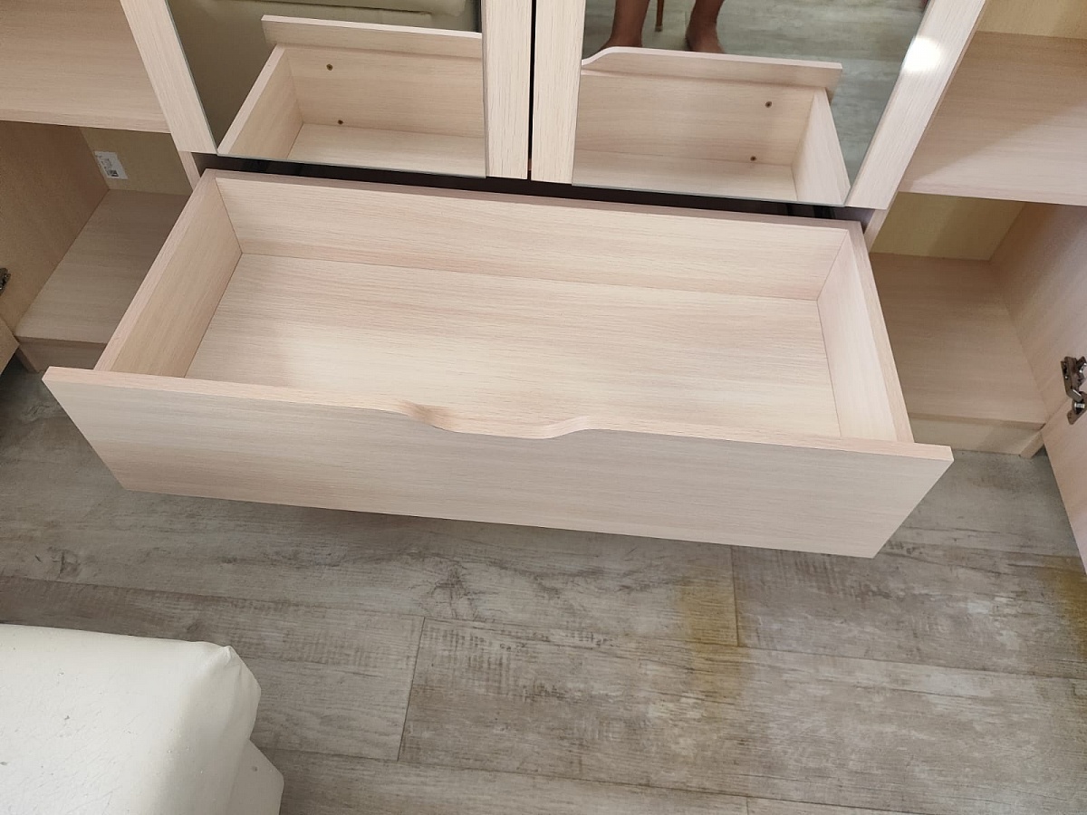 Нужен был вместительный бюджетный шкаф " нон-стоп". Этот шкаф - просто супер. Из дополнительных опций только добавили полку. Собирали сами, схему нашли уже после сборки. Имея некий опыт сборки, всё понятно и просто. Только к цвету фасада есть вопрос. Это не первая покупка в этом магазине и выбирая цвет положилась на свой прежний опыт. Вопрос: для чего в цвет " дуб молочный" добавили столько желтого? Вот цвет разочаровал. И ещё один момент, если ручки поднять сантиметров на десять, будет смотреться стильно. Хочу приложить фото прежних покупок в этом цвете, но не такое розовое и без желтого.