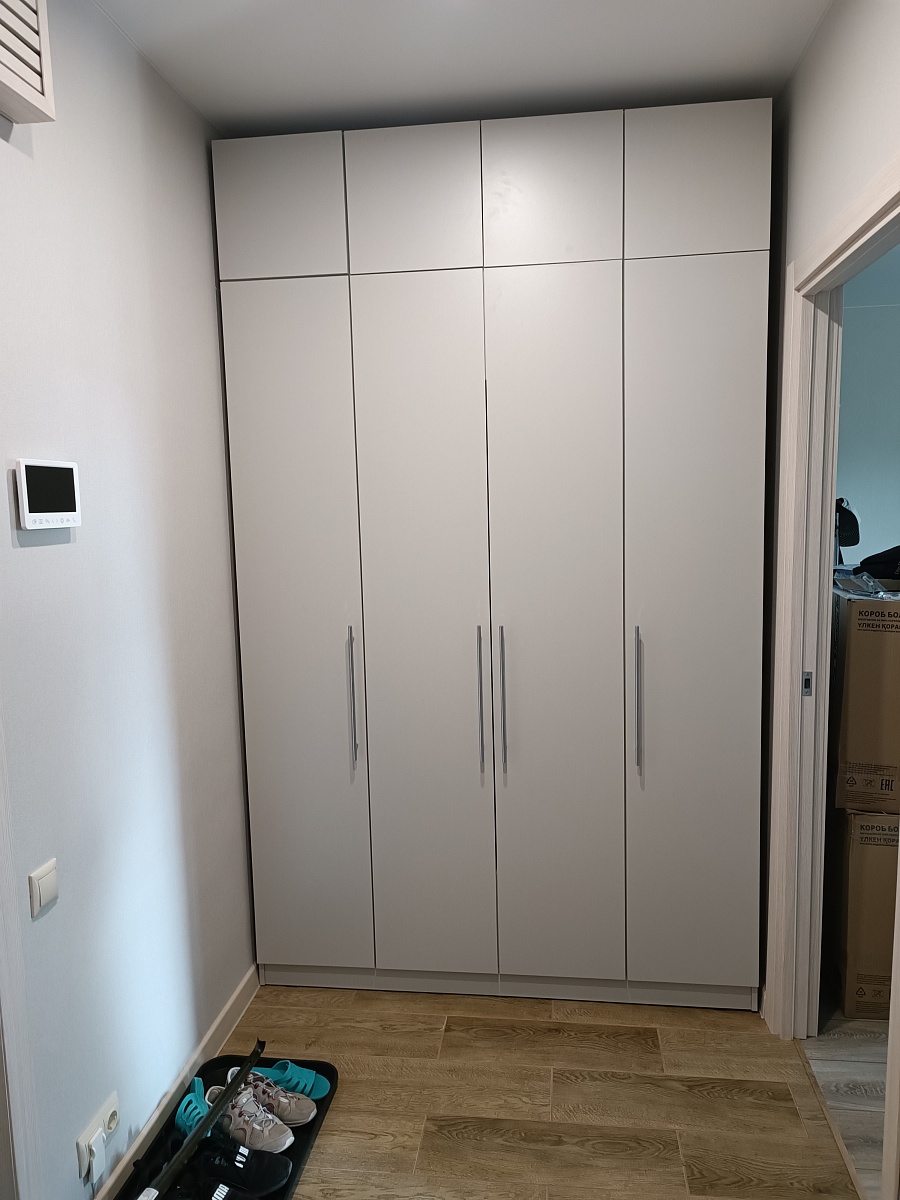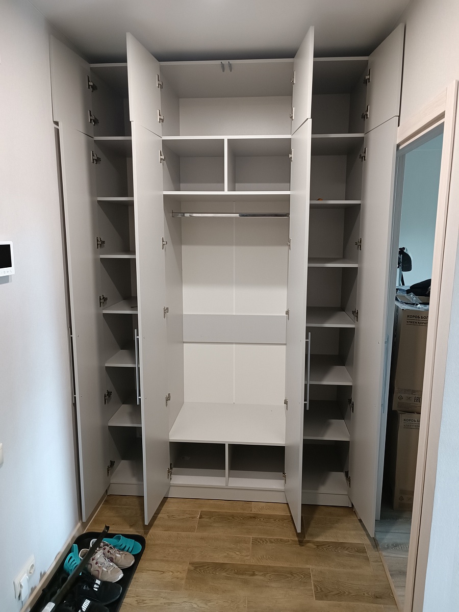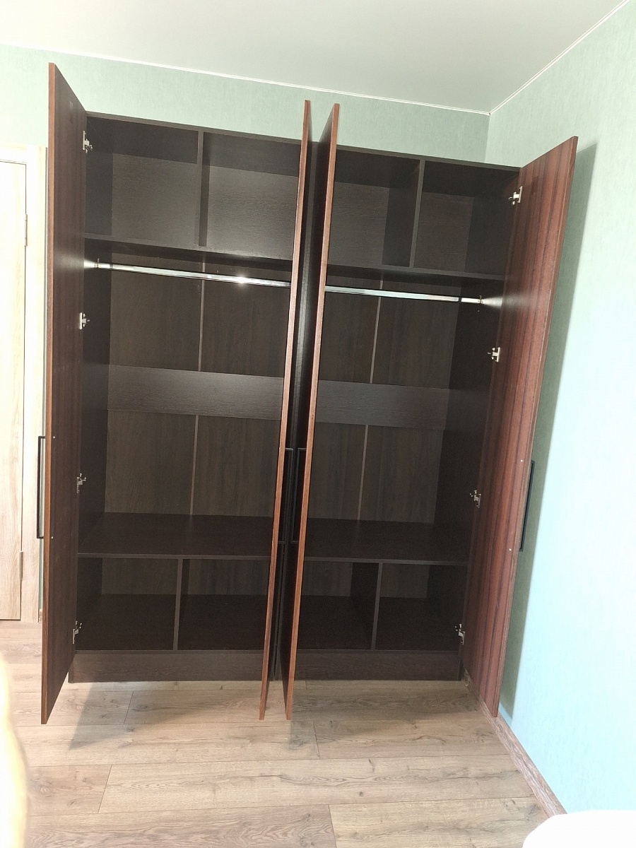 Заказ 00000813351, изделие ЭСКИЗ №00000813351 Шкаф распашной Остин Лайт 6 BMS (1500х2500х600)Шкаф заказывался по индивидуальным размерам и дополнительными опциями в виде петель с доводчиками и ручками на выбор. Заказ делал в шоуруме на метро Домодедовская. Шкаф привезли буквально через несколько дней, собирал сам с товарищем. Ушел на сборку 1 день. Качеством изготовления очень доволен. Рекомендую данную модель и продавца.