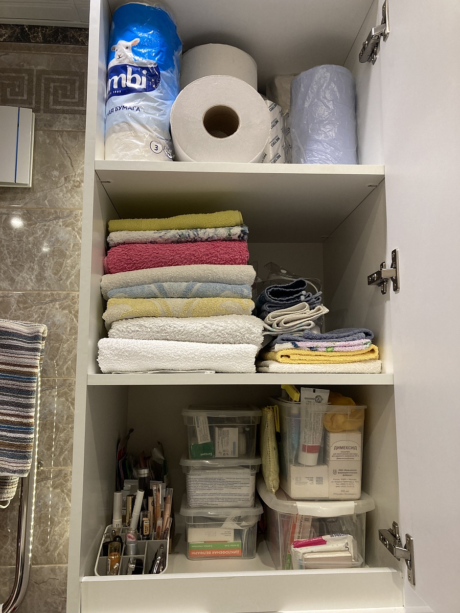 Тумба хорошая, свои функции выполняет. Пришлось доработать дверцы, чтобы надежнее закрывались (приспособили магниты к ним). Вместительная!