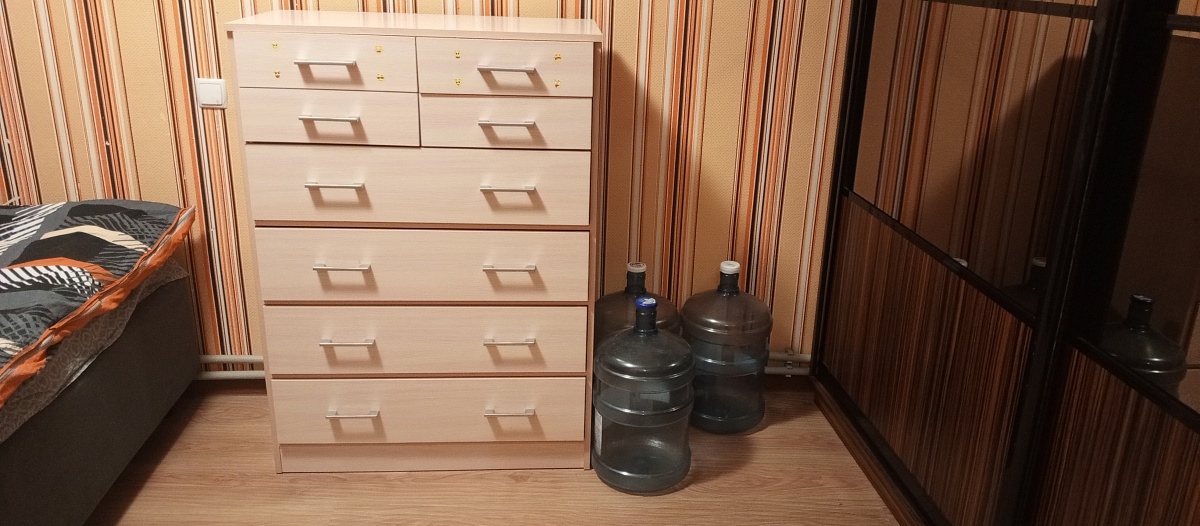 Заказ 00000788555. Отличный комод, оптимальное соотношение «цена-качество», привлекательный минималистичный дизайн. Занимает мало места, но при этом вместительный. Доставили вовремя. Единственный недостаток-непонятная инструкция по сборке. Самостоятельно собирать не решились, заказали сборку, хотя точно такой же комод из Икеа легко собрали сами.