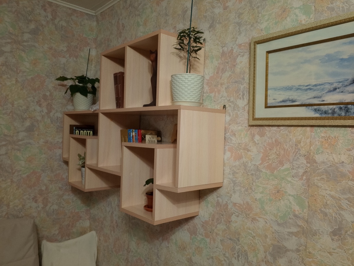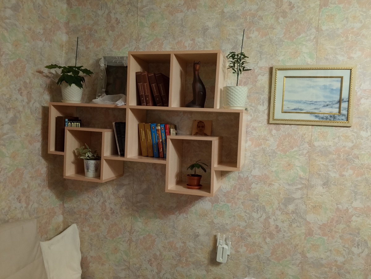 Полки Дамбо понравились, дизайн оригинальный. Немного погорячился, перегрузил полку книгами и ее немного повело (на фото заметно). Пришлось подкреплять дополнительными уголками. Вторую полку расположил вертикально (на втором фото).Заказ № 1049661 от 02.08.2024.