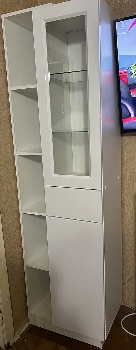 Заказ 00000744922Сначала хотел заказать шкаф в ванную в компании специализирующейся на индивидуальных дизайн проектах. По итогу совсем простой шкаф получился по космической стоимости. Решил посмотреть предлагаемый ассортимент в BestMebel, тут нашёл интересный и нестандартный вариант, который на мой взгляд идеально мне подошёл.При этом стоимость оказалась более чем в 2 раза меньше. Немного скорректировав размеры под себя, получил идеальный вариант. Качеством исполнения изделия очень доволен.