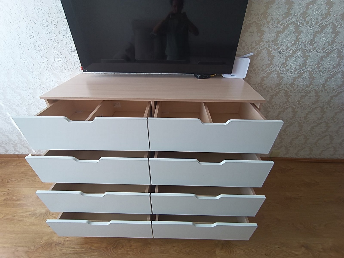 Отличный комод за свои деньги. Заказывала впервые. Очень довольна. Хорошо, что можно размеры выбрать. Думаю еще другую мебель заказать. Заказ 00000788675.